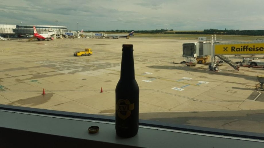 Pod mojim domom ma víta nabudený Lukáš stepujúci aj s jeho obrovským kufrom, do ktorého by sa zmestil snáď celý jednoizbák :D. Niečo okolo druhej poobede si to vyberáme na autobus smer Letisko Bratislava, avšak nie k odletu, ale k nástupu na linku Slovak Lines do Viedne. Tam dopĺňame kalórie predraženou, ale aspoň čerstvou bagetou za 3€ (sme predsa na letisku a nie hocijakom!) a sadáme na tradičnú hodinovku na Schwechat, kde sa už tešíme, že si dáme jedno chladené.