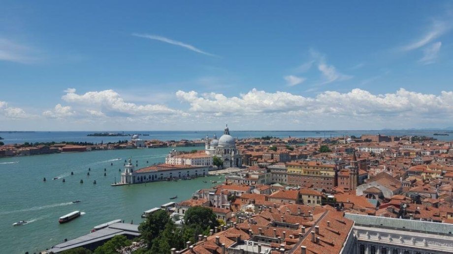 V Benátkach si pohodlne vystačíte s vlastnými nohami. A loďkou. Iná možnosť ani neexistuje, pretože celé plávajú na vode a tak tu nenájdete ani jedno auto. Jej úzkymi uličkami sme sa iba za pomoci Google Maps a vlastného úsudku predrali cez známy Rialto Bridge (akurát v rekonštrukcii ☹) až k námestiu svätého Marka so známou vežou a bazilikou. Vstup na vežu stojí 7 €, ale stojí to naozaj za to, pretože všetky tie červené strechy a kanále máte odtiaľ ako na dlani. Hore sme sa dostali presne na poludnie a zrejme si viete predstaviť to preľaknutie všetkých návštevníkov, nad ktorých hlavami, ani nie o meter vyššie, sa začal zrazu hompáľať obrovský zvon a udierať na obed. To bol Pavlov reflex aj pre nás a pobrali sme sa odtiaľ na “MHD” loďku, ktorá nás do hodiny cez kanále priblížila k nášmu hotelu, kde sme sa aj najedli. Okružná jazda loďkou stojí takisto 7 €. Sadli sme si do prvej reštaurácie, objednali si litrové pivo a samozrejme domácu pizzu. No jasné, že nás pri účte skoro otočilo, keď na ňom zasvietilo 55 € pre oboch, ale tak bolo to na dlhý čas posledné jedlo, ktoré sme si museli platiť. Tu mi inak napadlo spomenúť výborný tip na jednu aplikáciu, ktorá delí výdavky medzi niekoľko ľudí, rozrátava meny, kurzy a veľa ďalšieho. Dal som jej prvýkrát šancu a zistil, že je naozaj super nenahraditeľná. Už si nemusíme pamätať, kto komu koľko dlží, stačí len na konci výletu pozrieť do aplikácie a hneď sa viete medzi sebou vyrovnať. Ešte jej názov -Travel Money. Zapáčila sa mi natoľko, že som sa ju rozhodol preložiť aj do slovenčiny, pretože v angličtine neboli nami zaužívané výrazy príliš jednoznačné. Tak a už nám zostávalo len zobrať si bágle z hotela a nájsť v prístave našu loď, teraz už tú naozajstnú, veľkú.