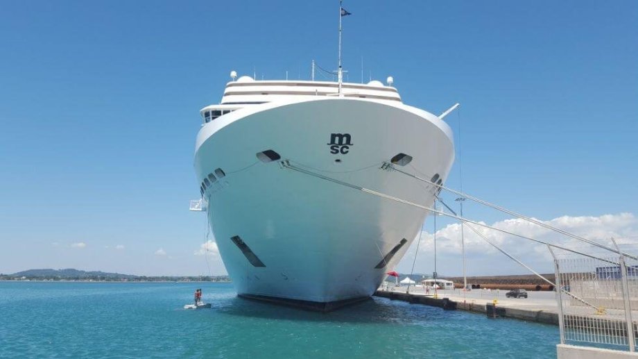 Už z diaľky sme podľa loga MSC šípili, že to bude Ona. A samozrejme bola, len tá cesta k nej bola trochu zarúbaná. Najprv nájsť cestu k správnemu doku, potom odovzdať batožinu, ktorá si vás neskôr sama nájde pred dverami do kajuty, potom fotka, potom odovzdanie kartičiek, ktoré slúžia na úplne všetko možné počas celej plavby (vstup do kajuty, platenie za služby, nápoje, identifikácia stolu pri večeri, …) no a nakoniec samotné nalodenie, čo zabralo asi najviac času, keďže sa naloďovalo po skupinkách, ktoré boli označené na karte. Tomu samozrejme nerozumie asi trištvrte prítomných a tak je to väčšinou len úplný chaos. Nám sa to ale podarilo po necelej hodine a pred odplávaním z prístavu sme mali na preskúmanie aspoň malej časti lode ešte hodinu.