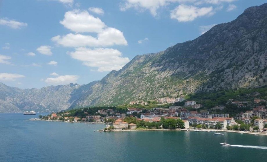Ráno už bolo more kľudnejšie, ale to najskôr kvôli tomu, že sme sa po zobudení ocitli v zátoke čiernohorského mesta Kotor. Bolo sedem hodín a o ôsmej sme už boli pripravení na našej druhej exkurzii, ktorá zahŕňala kajakovanie naprieč zálivom. Prišiel pre nás celkom milý mladý miestny chalan, peši nás odviedol k pristaveným dvojmiestnym kajakom, vysvetlil základné bezpečnostné opatrenia a o chvíľu sme sa už čvachtali z jedného konca zálivu na druhý. Väčšinu času sme s Lukášom pádlovali ako o dušu a všetkým utiekli, ale vždy sme sa nejakými cestičkami vrátili, aby sme sa náhodou nezatúlali do plavebného koridoru. Inak tie pokojné vody zálivu vyzerali tak možno z lode. Na kajakoch to bol trošku adrenalín a hlavne stále menenie kurzu, aby sme išli proti vlnám predkom a nie bokom a neskončili tak vo vode. Za hodinku sme priplávali na druhý breh k malému bufetu, kde nám dal miestny pauzu. Mysleli sme, že si dáme niečo z propagovaného občerstvenia, ale mimo nápojov a nanukov bufetár nič iné nemal. Skončili sme pri opaľovaní na lehátkach a cole za 2,2 €. Keď sme znovu začali vkladať naše veci do vodotesného sudu, ktorý sme so sebou vliekli, sprievodca spozornel pri mojom slove “zatváram” a keďže sa to veľmi podobne ponášalo na ich reč, nedalo mu to nespýtať sa, odkiaľ pochádzame. Po krátkom zvítaní a rozhovore o slovanských národoch bol celkom potešený, že sú tu nejakí Slováci. Väčšinou ich tu vraj mimo Rusov a Nemcov príliš nestretne. Povedal som mu, že na našej ceste je Čierna Hora zatiaľ to najkrajšie, čo sme videli a to som nepreháňal. Aj keď sme v tomto zálive len niečo cez hodinu, je to tu naozaj nádherné. Monumentálne hory, priezračné more, zeleň a malé domčeky. Veď posúďte sami: