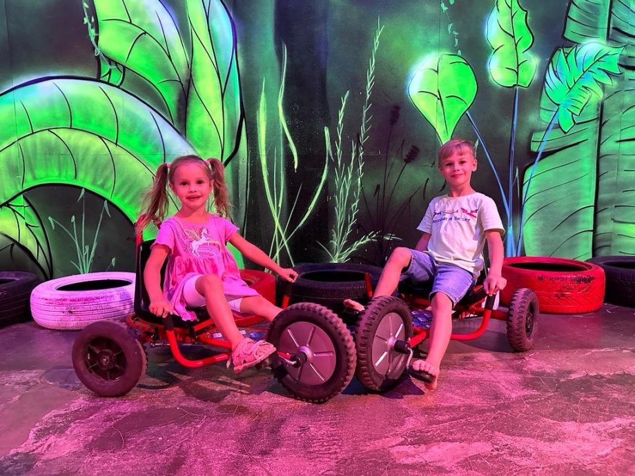 Šli jsme i do světa iluzí, který se sice platí zvlášť, ale je fakt super. Máme krásný fotky! My si zavzpomínaly, když jsme sedaly do trabantu, děti hladily obří kočku, jely na surfu žralokovi přímo do tlamy. Mají tam i létající koberec, lekníny a další krásné iluze.