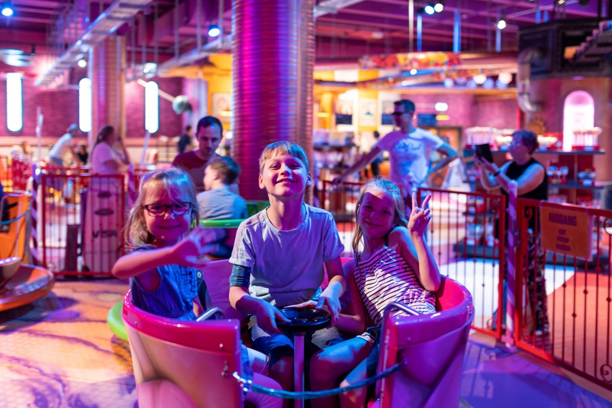 Nejdřív se děti vrhly na trampolíny a do takového toho dětského prolézacího "bludiště", takže za chvíli z nich lilo, mikiny šly dolů a potřebovala jsem je trochu zklidnit. Vybrali jsme "Mlsnou továrnu", je tam kolotoč z cupcaků, lízátková lavice a další krásný barevný atrakce. A samozřejmě si tam můžete dát i něco dobrého. Děti vykručely wafle a lízátka, my s kamarádkou si daly dobré kafe.