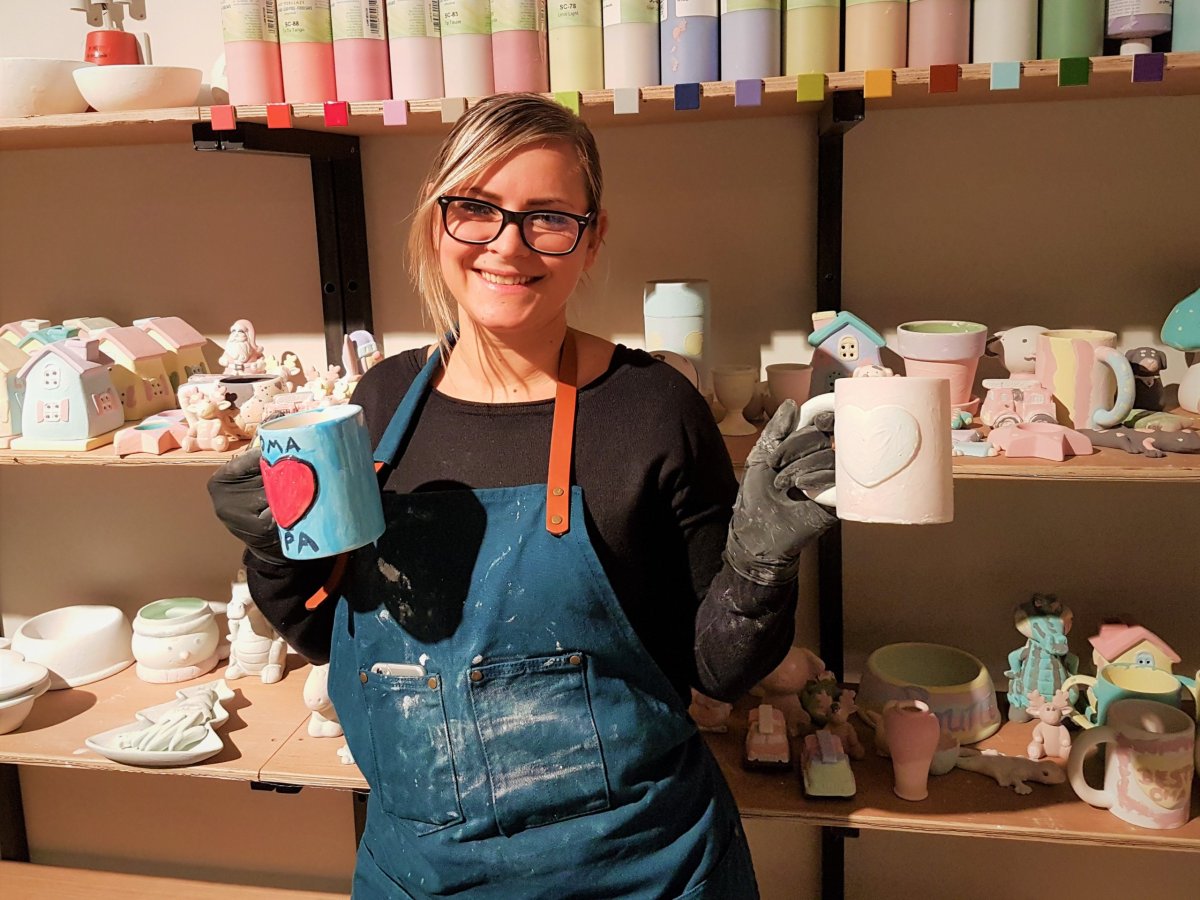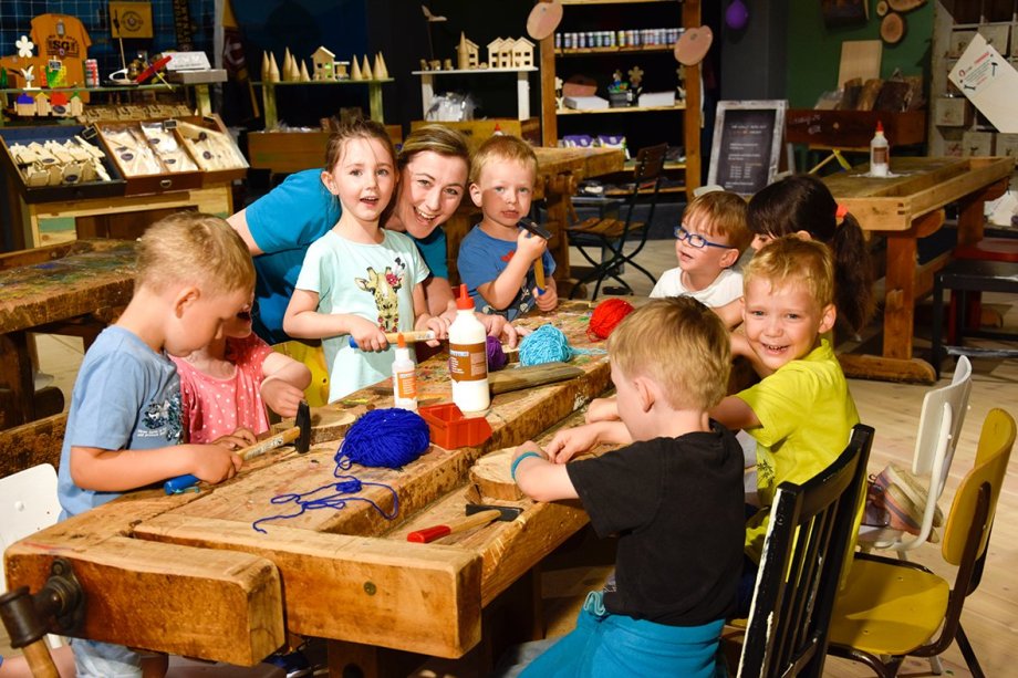 Pak jsme je už potřebovaly trochu uklidnit, a protože jsou vyráběcí, šli jsme malovat na keramiku, pak nám to i zapekli a dárky pro babičku byly na světě. Asi máte pár takových doma na poličce taky, ne? V Oskarshausenu mají pro děti i truhlářskou dílnu, to je naprosto boží, protože kde se dnešní děti dostanou k vyrábění ze dřeva, že... Navíc Marťa se pod dohledem truhláře mohl postavit i k truhlářskému soustruhu. Boží!