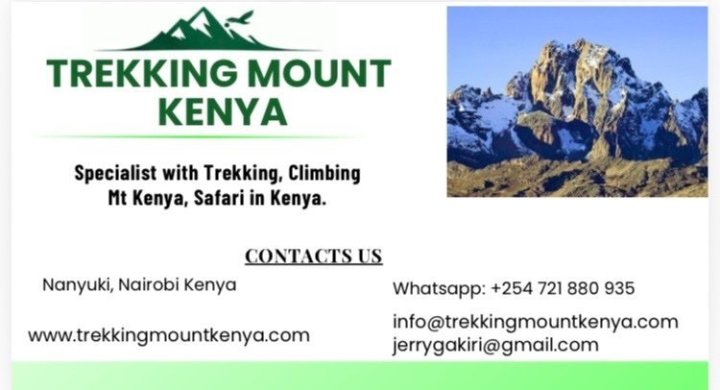 "Původní obyvatelé nazývali horu Kee Nyaa (Místo pštrosa), protože skály a led na jejím vrcholu připomínají zbarvení pštrosího peří. Mount Kenya je považována za svaté místo a země Keňa je podle hory pojmenována. Mount Kenya National Park vznikl v roce 1949, má rozlohu 715 km² a jedná se o impozantní vyhaslý vulkán. Jediným turisticky dostupným trekingovým vrcholem je Point Lenana, která je svou výškou 4985 m třetím nejvyšším vrcholem pohoří."