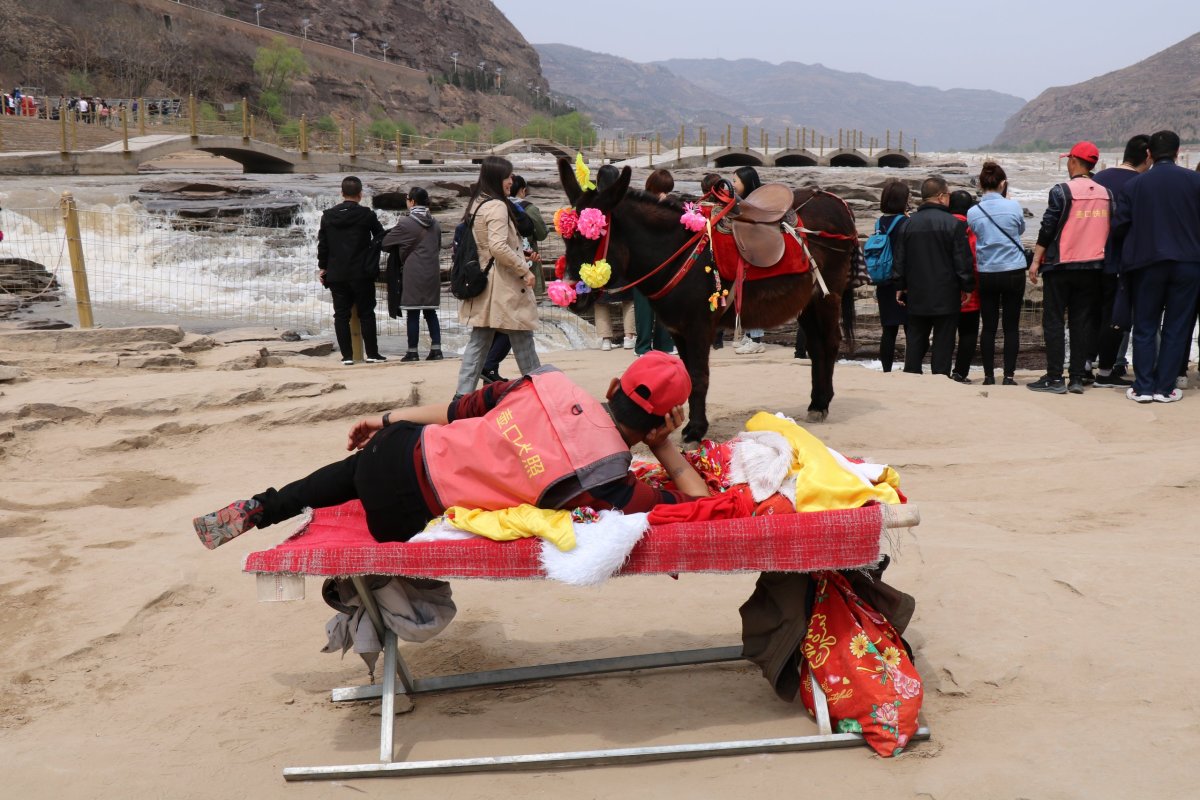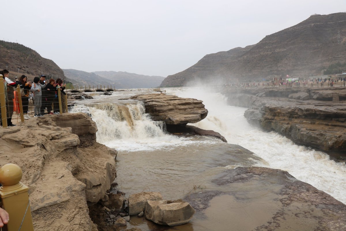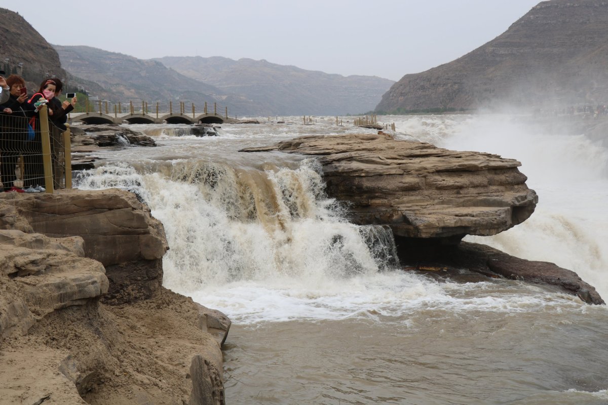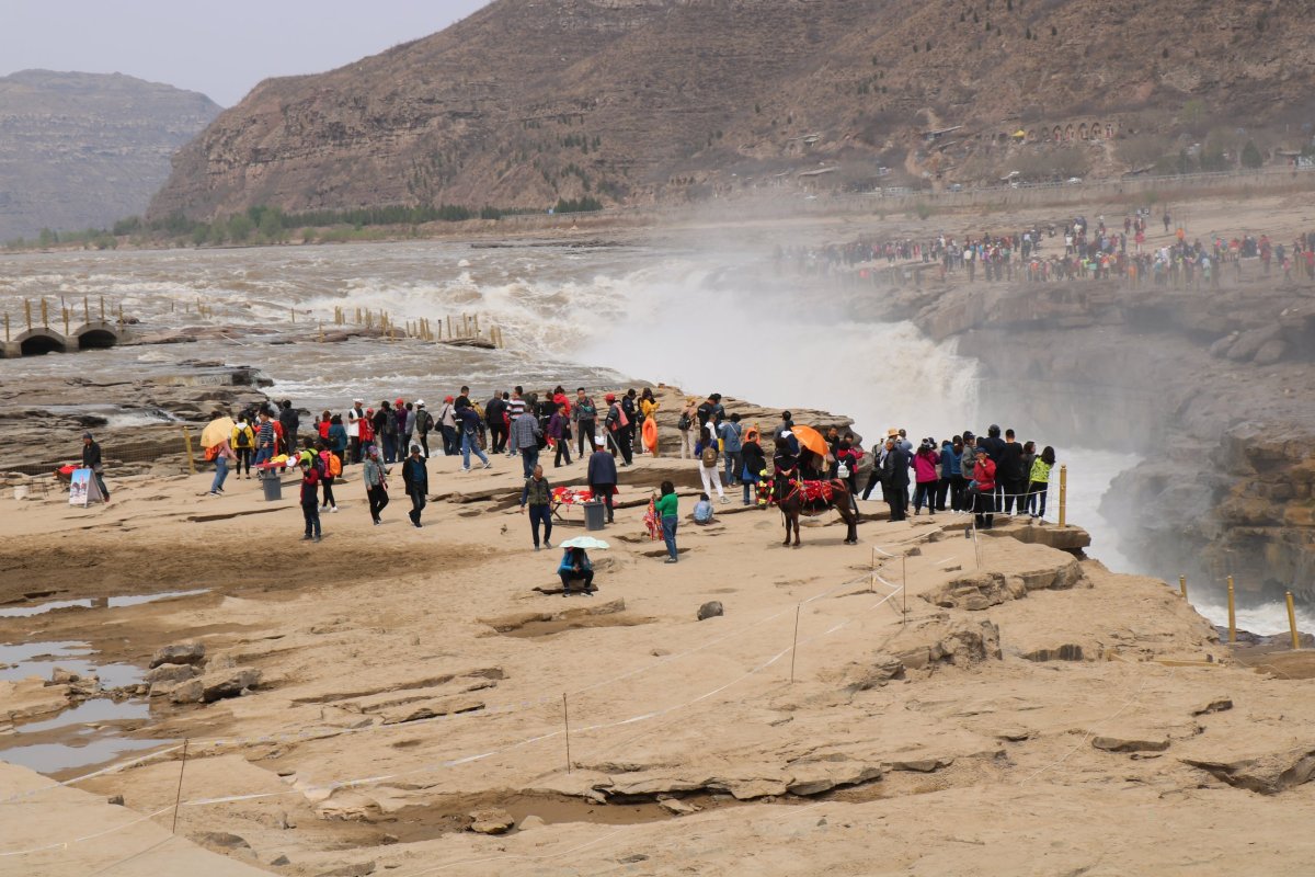 Jak už jsem napsal o odstavec dříve, cizinci jsou v Yan'anu vzácností, proto pokud si chcete vyzkoušet, jak se cítí celebrity, určitě se do nějakého zapadlejšího čínského regionu vydejte. Každý si tu člověka fotí, směje se a snaží se prodat své znalosti angličtiny, které se většinou omezují na "hello" a "China". Nejinak je tomu i v restauraci u vodopádů. Byli z nás doslova nadšení, nabídli nám zdarma jablka, knedlíčky a cigarety, ukázali nám fotky vnoučat, přátel i bratranců přes tři kolena, natočili si nás, jak jíme a nakonec přišli i kuchaři, aby se s námi vyfotili. No jiný svět. Minibus na nás už čeká, zbývá ujet jen pár kilometrů a jsme u vodopádů. Přesněji u pokladen, kde si za 90 yuanů (315 korun) kupujeme vstupenku na vodopády a za dalších 20 yuanů (70 korun) lístek na autobus, který nás k nim doveze. Na Hukou se doporučuje jet v březnu či dubnu, tedy v dobu, kdy taje sníh a je dostatek vody. Té je tentokrát víc než dost, dokonce tolik, že zaplavila stezku, z níž je vodopád nejlépe vidět. Z druhé strany je vše vidět lépe, ta však leží v druhé provincii, kam se člověk může dostat přes most ležící asi o dva kilometry dále, navíc musí znovu zaplatit vstupné, největší problém ale nakonec spočívá v čase. Minibusař nám dal jen hodinu, pak se musíme vrátit zpět, jinak se můžeme vydat na Dlouhý pochod do Yan'anu pěšky. Očividně ho ale jen otravovalo čekání, cestu zpátky stíhá za hodinu a půl, zatímco k vodopádům jel jako s hnojem. Kdyby nám rozuměl, tak by pravděpodobně odpověděl, že co naložil, to veze, i tak mi ale přišlo, že jet přes čtyři hodiny je trochu moc. Vodopády jsme tak jen prolétli, ale vzhledem k tomu, že jsme do města přijeli o něco dřív, než jsme čekali, mohli jsme se ještě vydat na menší průzkum. Jdeme se podívat k pagodě, až nahoru k ní ale nestoupáme, zavírací doba se totiž kvapem blíží a vstupné je poměrně vysoké, 60 yuanů (210 korun). Nabízí sice výhled na celé okolí, mínusem ale je, že tím okolím je právě Yan'an, průmyslové město, kde nic není. Na nábřeží lidé tančí, zpívají nebo jen tak posedávají a užívají si teplý sobotní podvečer. Ještě procházíme město, později jdeme na večeři, vše zapíjíme čínskou rýžovou pálenkou baijiu, která chutná asi jako ředidlo, a na hotelu usínáme jako zabití.