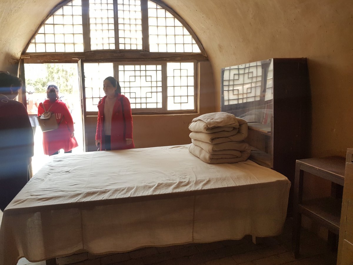 V muzeu by se daly strávit hodiny, je tu spousta sálů plných historie, takoví nadšenci ale nejsme, a proto radši nasedáme na autobus a přesouváme se o pár zastávek dál k místu Yangjialing, kde je vidět, jak nejvyšší komunističtí představitelé bydleli. Stejně jako ostatní obyvatelé širokého dalekého okolí, i oni bydleli ve sprašových dírách. Alespoň tak se to dnes prezentuje. Můžete si tu tak prohlédnout Maovu díru nebo také jeho zahrádku, kde se odreagovával pěstováním tuřínu. Komunismu bylo ale pro dnešek dost, jde se na oběd. Dáváme si místní černé nudle, které kupodivu chutnají jako tatarák, posedáváme, po chvíli už je však čas jet na nádraží a vydat se zpět do Xi'anu. Za okny pomalu ubíhá sprašová krajina, továrny střídají pole a pasáky ovcí. Yan'an byl zajímavý, bylo fajn vidět něco jiného a zažít trochu jinou Čínu, která začíná hned pár kilometrů za naším velkoměstem, ale samotné vodopády nejlépe shrnula paní, s kterou jsme se bavili ve vlaku.