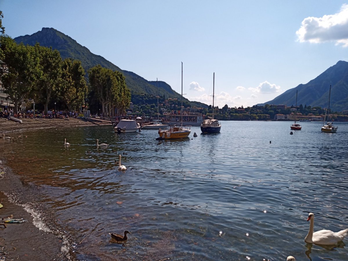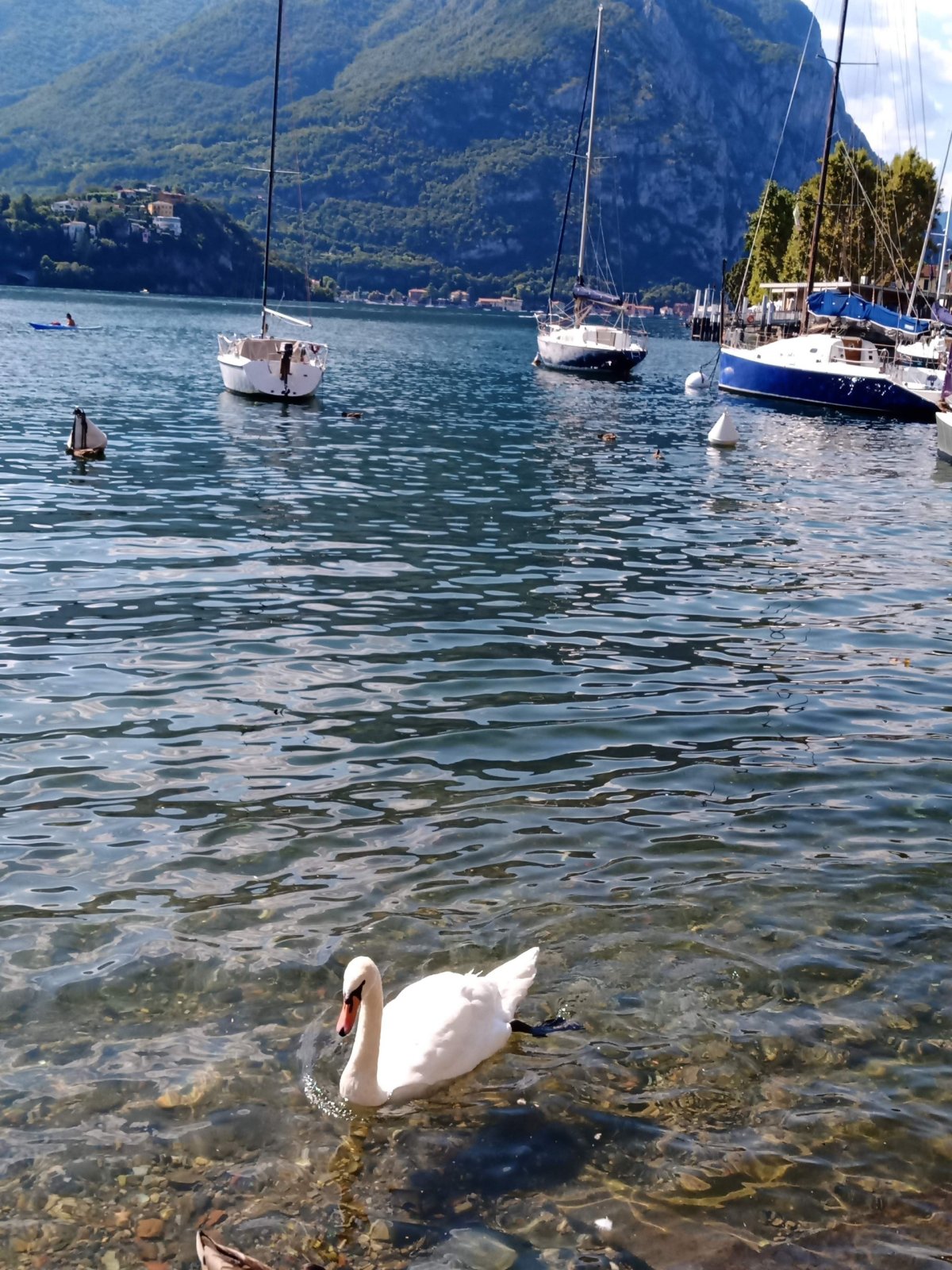 Po přestupu přijíždím k obědu u jezera Lago di Como na mnohem příjemnější místo. Mimo rušná města. Do městečka Colico. Kde i s pizzaobědem 🍕 krmím labuťáky , a chvíli odpočívám u tohoto krásného jezera. Toto
