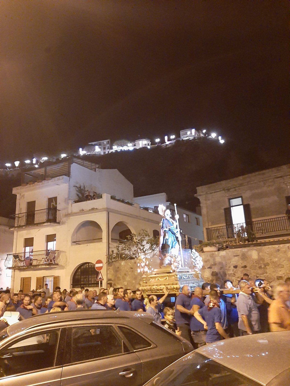 Ve Scille jsme strávili celkem 6 dní. Ve městě, ve kterém se zrovna konal "Festa patronale in onore di San Rocco", neboli Patronální svátek na počest San Rocca. O konání tohoto svátku jsme se "dozvěděli" hned první ráno ve Scille, když se v 8 ráno vystřelovaly do vzduchu kulové pumy - toto se opakovalo další 2 rána. V průběhu každého dne nechyběly ohňostroje, které pokračovaly i ve večerních hodinách a jednou během našeho pobytu i v brzkých ranních hodinách. Nechyběl také průvod celým městem s živou hudbou, ve kterém místní nesli sochu patrona.