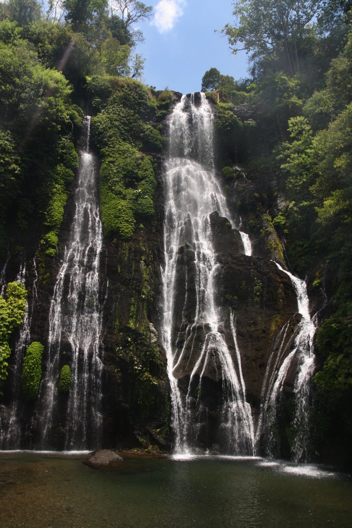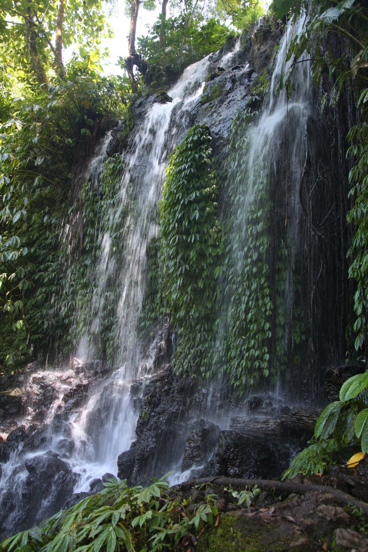 Na hlavní silnici nás naše zkratka na hřebíček vyplivuje skoro hned u vyhlídky na Twin Lakes. Oceňujeme pěkný, i když ne zrovna dechberoucí výhled a jedeme dále k dalším “dvojčatům”, tentokrát jde o nedaleké vodopády Banyumala. Prašná cesta je pro dvě auta dost úzká a na motorce by to rozhodně bylo lepší. Z parkoviště po deseti minutách chůze přicházíme k vodopádům, které bych mohl nazvat úžasnými, pokud bychom dříve nenavštívili Tumpak Sewu na Jávě. A taky nebýt všech těch lidí na tomhle instagramable místě. Trochu si pobrouzdáváme v osvěžujícím jezírku a vracíme se k autu. Po cestě narážíme ještě na jeden menší ale pěkný vodopád skrytý mezi stromy.