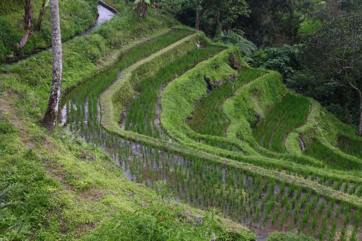 Připozdívá se, avšak před námi už je jen poslední dnešní zastávka - rýžové terasy Jatiluwih (Unesco). Gusti s námi zastavuje na vyhlídce mimo placený areál. Nevypadá to tu (naštěstí) jako na přesaturovaných fotkách a pohlednicích. Ve skutečnosti je to mnohem krásnější! Nevím, jestli mám dříve obdivovat všechny ty odstíny zelené nebo důmyslnost celého zavlažovacího systému. Rýže je čerstvě vysázená a stonky sotva vyčuhují z vody. Až se za pár týdnů trochu vytáhnou, bude to tu ještě nádhernější. Neméně skvělé je, že to člověk všechno nemusí sledovat jen z cesty, ale může se terasami přímo procházet, což samozřejmě podnikám a fotím přitom o sto šest. Nakonec mě odsud Kája musí pomalu odtrhnout a nacpat do auta :-)