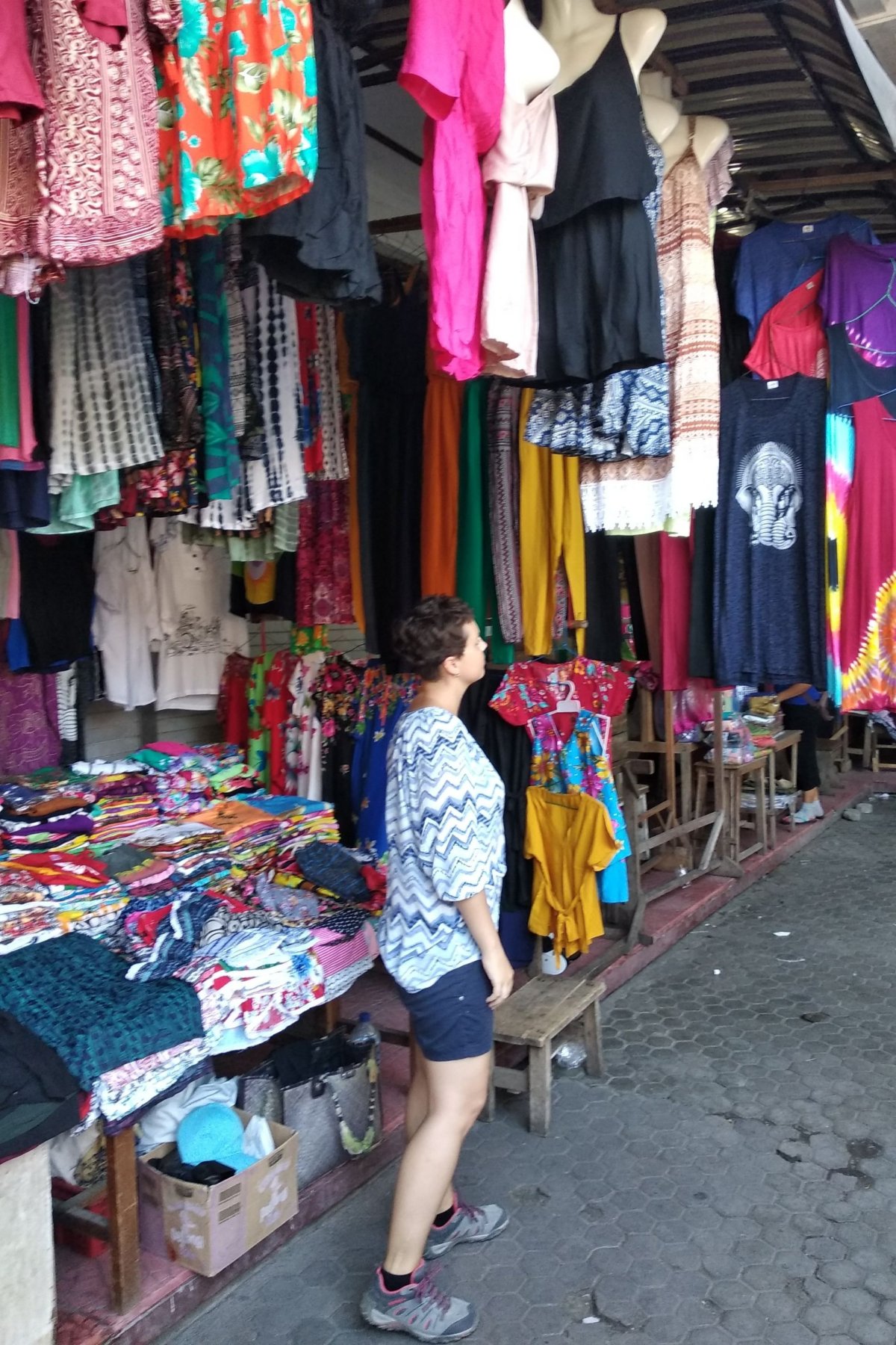 Cesta je lemovaná desítkami stánků se sarongy, oblečením, kamennými soškami a dalšími tretkami. S prodavačkami si hezky zasmlouváme a pořizujeme nějaké suvenýry. Překvapilo mě, že ceny ve stáncích kolem turistických památek se dají usmlouvat ještě níže, než třeba na tržišti či v pouličních obchodech.