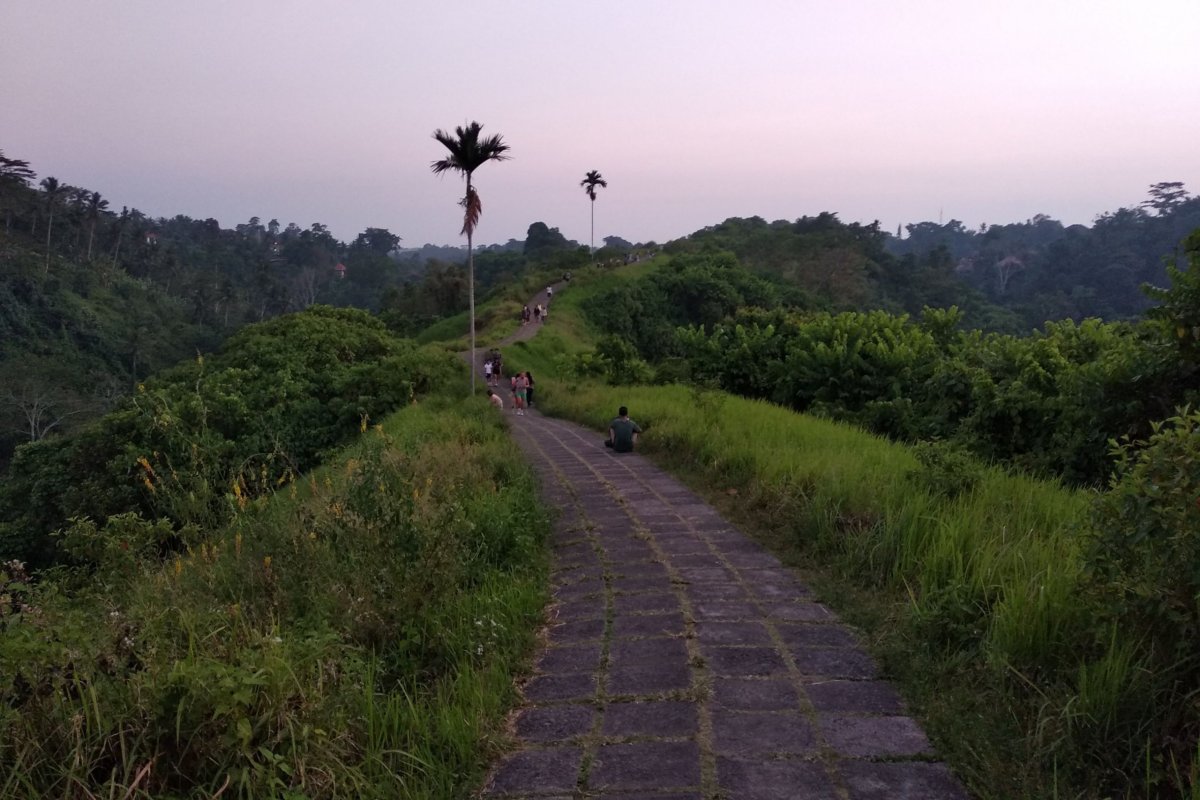 Z tržiště objíždíme centrum města, abychom se vyhnuli špičce, a kolem Monkey Forestu sjíždíme k výchozímu bodu na Campuhan Rigde Walk. Skútry stojí úplně všude a ten náš vmáčkneme na malé parkovišťátko k desítkám dalších. Necháváme odemčené řízení, aby skútr případně někdo mohl posunout. Vyrážíme za davem a záhy se všichni vracíme skoro na začátek a tentokrát už volíme správný směr. Užíváme si příjemnou procházku po travnatém hřebínku při západu slunce. Jako všude v Ubudu je tu spousta turistů. Za půl hodinky pomalé chůze jsme na konci a vracíme se stejnou cestou zpátky. Mezitím se setmělo a my s baterkami hledáme náš skútr na parkovišti. Nakonec ho nacházíme až vzadu u zdi, kam nám ho kdosi přeparkoval. No oddechli jsme si…