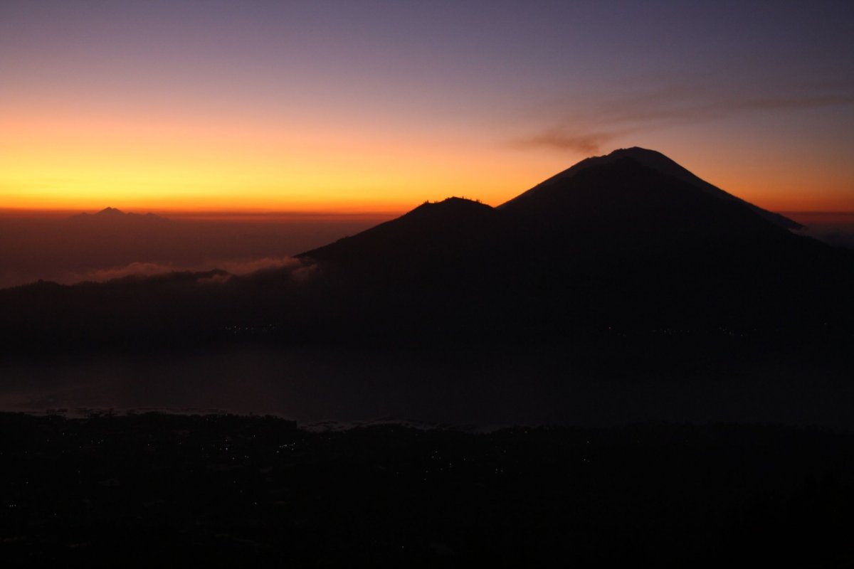 Budíme se kolem půlnoci a nabalení a rozespalí nasedáme do auta. V základním táboře čekáme na zbytek naší skupiny a zahříváme se čajem. Naštěstí je mnohem tepleji než na Bromu. Zanedlouho naše česko-německo-britsko-ruská skupina vyráží do hory vstříc vrcholu sopky Batur. Náš balijský horský vůdce nasazuje šílené tempo téměř bez přestávek, takže rychle stoupáme a krátce zastavuje jen když si svlékáme další vrstvu oblečení. Delší přestávka je až u chrámu, kde si průvodci odskakují na noční modlitbu.