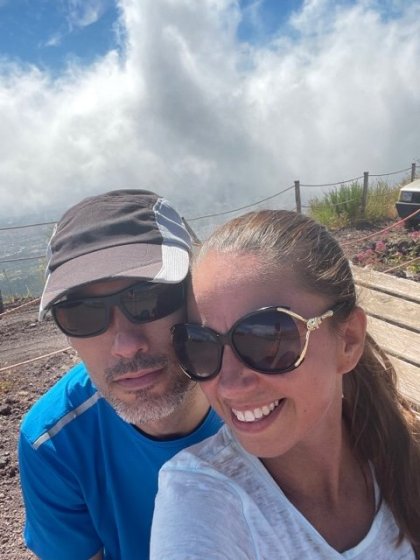 Po snídani vyrážíme na pláž. Plavání a odpočinek na černém hrubém písku je skvělou relaxací. Plánujeme výlet na Vesuv. I když recenze na Vesuvio express nebyly zrovna kladné, kupujeme lístky právě u nich. Oběd si dáme na lavičce u zastávky, a protože je čas, zkusíme i místní domácí zmrzlinu. Cesta nahoru je klikatá a řidiči, kteří se střetnou naproti sobě musí neustále troubit, aby se vyhnuli. Ve tři hodiny odpoledne jsme ve výšce 1000 m n.m. a vydáváme se na pěší trek ke kráteru. Úžasné místo, i když turistů je tu plno. V půl páté se otáčíme zpět, abychom stihli zpátky autobus č.2. Cesta dolů nás úplně uspí a to v tuhle chvíli nevíme, co nás ještě čeká. Na tržišti v Ercolanu kupujeme meloun a sníme ho na posezení. U kašny se musíme umýt i s botami. Z Vesuvu jsme celý od prachu.