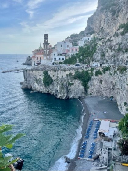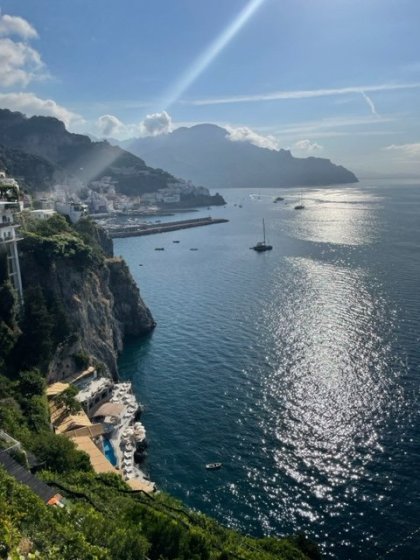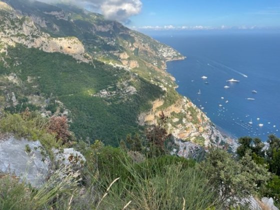 Úžasné ráno, plavání v poklidném moři a tradiční ovesná kaše. Čekáme, že nám někdo přijde otevřít, ale nic se neděje, tak si sbalíme a jdeme po schodech nahoru. Cestou se potkáme s naším mladíkem, který nám podává klíče a říká, ať nahoře zamkneme a dáme je do schránky. Pěšky jsme se přemístili do hlavního městečka tohoto pobřeží - Amalfi. Na začátku si dáme osvěžující zmrzlinu a procházíme město. Positano však nadále zůstává naší srdeční záležitostí. Tady je neskutečně narváno. Na městské pláži se v rychlosti osvěžíme a jdeme dál. Navštívíme úžasnou vyhlídku s výtahem ve skále. A pokračujeme pěšky do Minori, kde si dáme trošku kulturněji oběd a pokocháme se místní atmosférou starých uliček, kašny a hemžících se turistů. Odpoledne si natáhneme karimatky na nedaleké pískové pláži, abychom načerpali energii na další objevování. Navečer zase pokračujeme dál. Maiori nás přivítá osvětleným přístavem a nočním životem v uličkách. Docela se ochladilo, ale chceme se před spaním ještě vykoupat, tak docela klepeme kosu. Na pláži se tady spát nedá, všude je spousta lidí, tak jdeme po schodech nad městečko najít kousek nějaké přírody. Nakonec se uvelebíme u takové stezky, která vede do nějakého sadu. Je nám to už jedno, jsme tak unavení, že usneme kdekoliv.