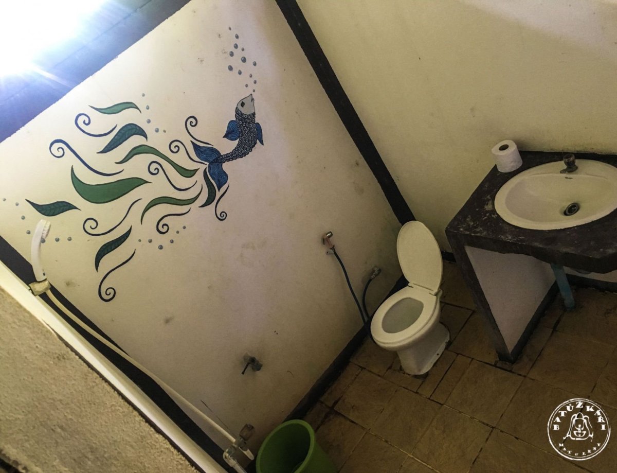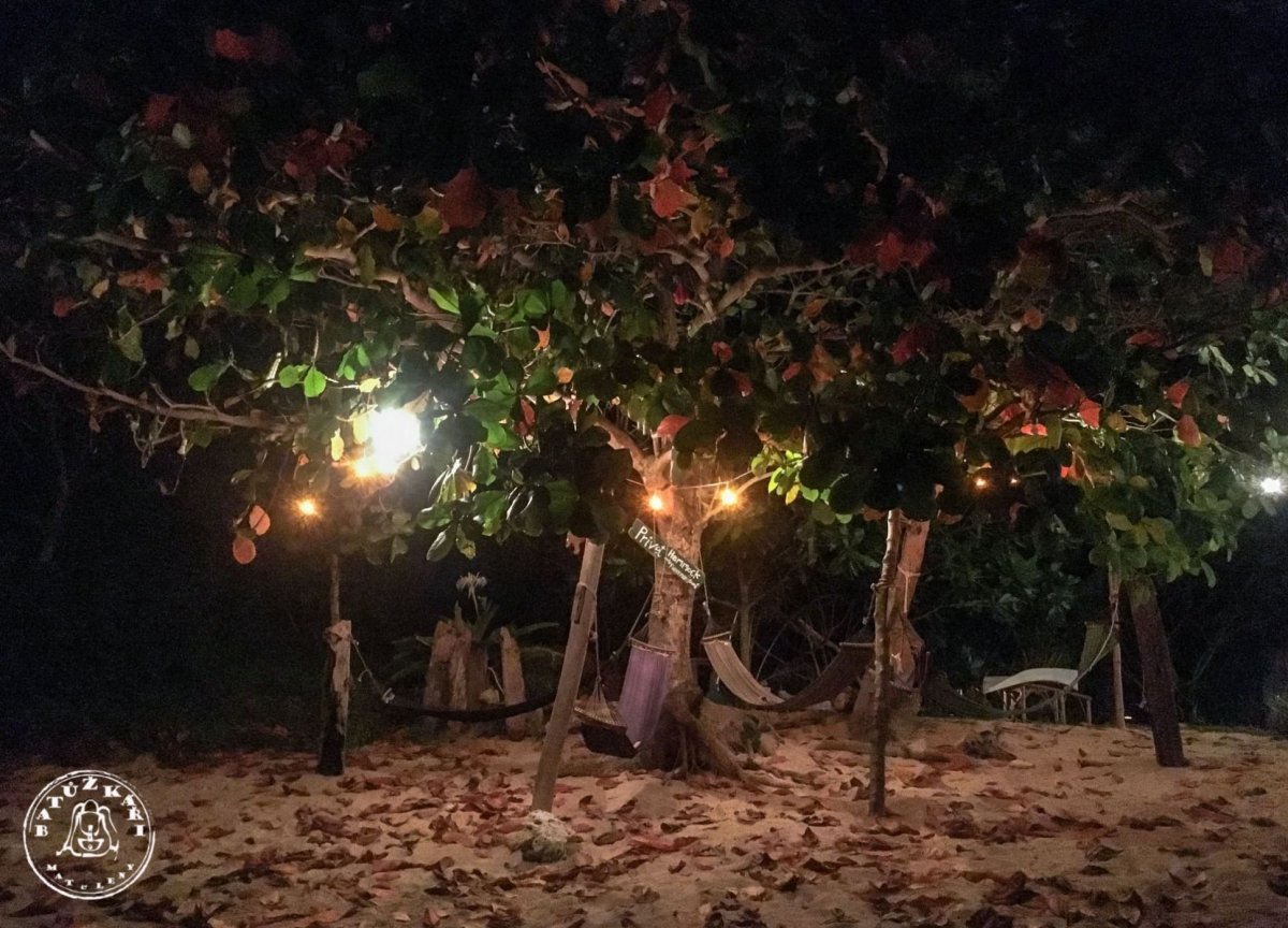 Než nám vyřídili ubytování, stihli jsme každý vypít dvě piva. Máme minimalistické ubytování, náš bungalow na nožičkách s brazilskou vlajkou na vstupu, má dvě postele s moskytiérou, jednu poličku, jednu zásuvku, kde proud jde pouze od 18hod do 6hod ráno, terasu a koupelnu přizděnou zvenku. Dáváme si vytouženou sprchu, převlíkáme do plavek, a cestou na pláž ještě stíháme místní speciality, tentokrát green kari…