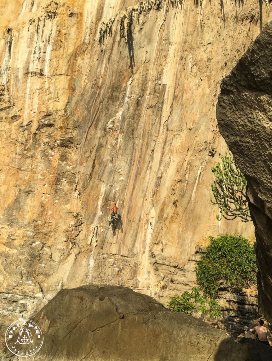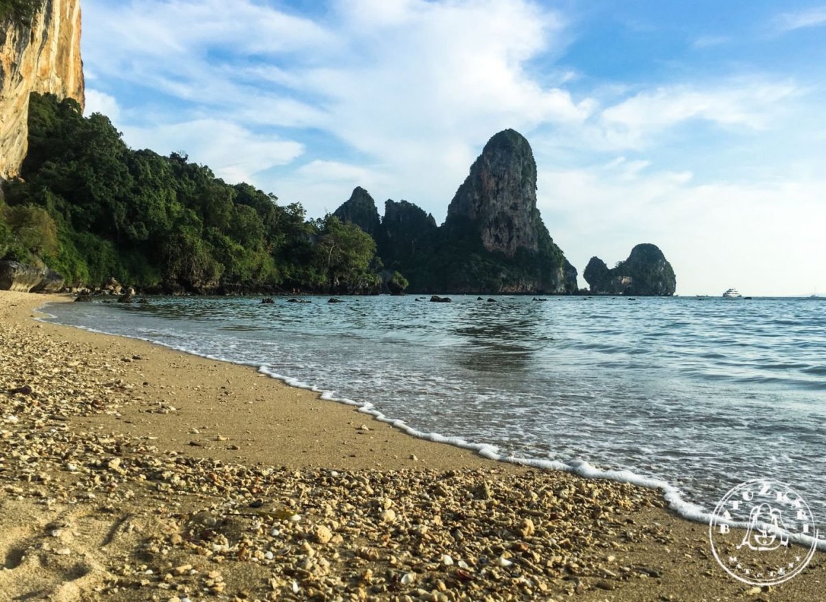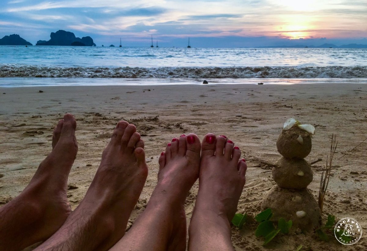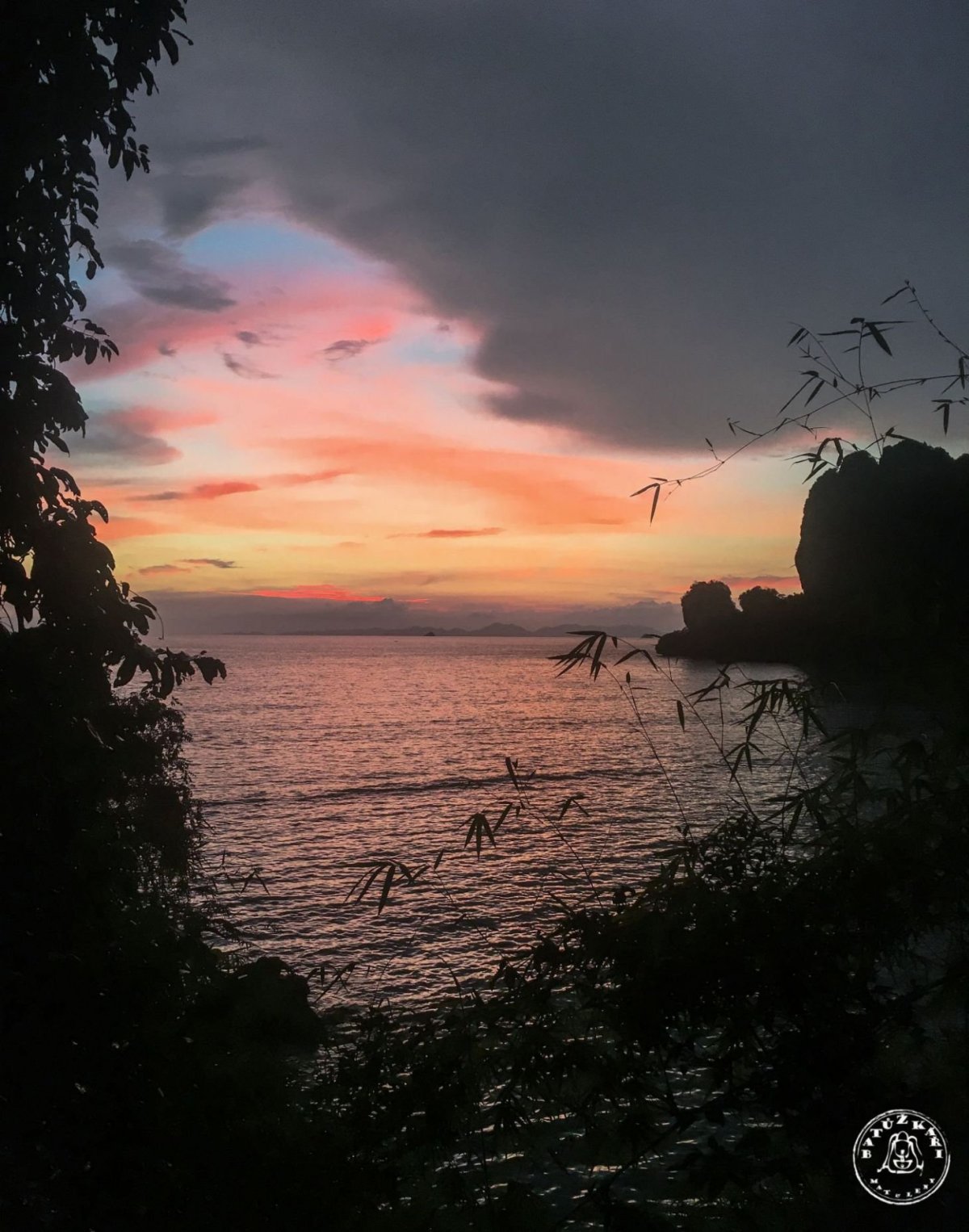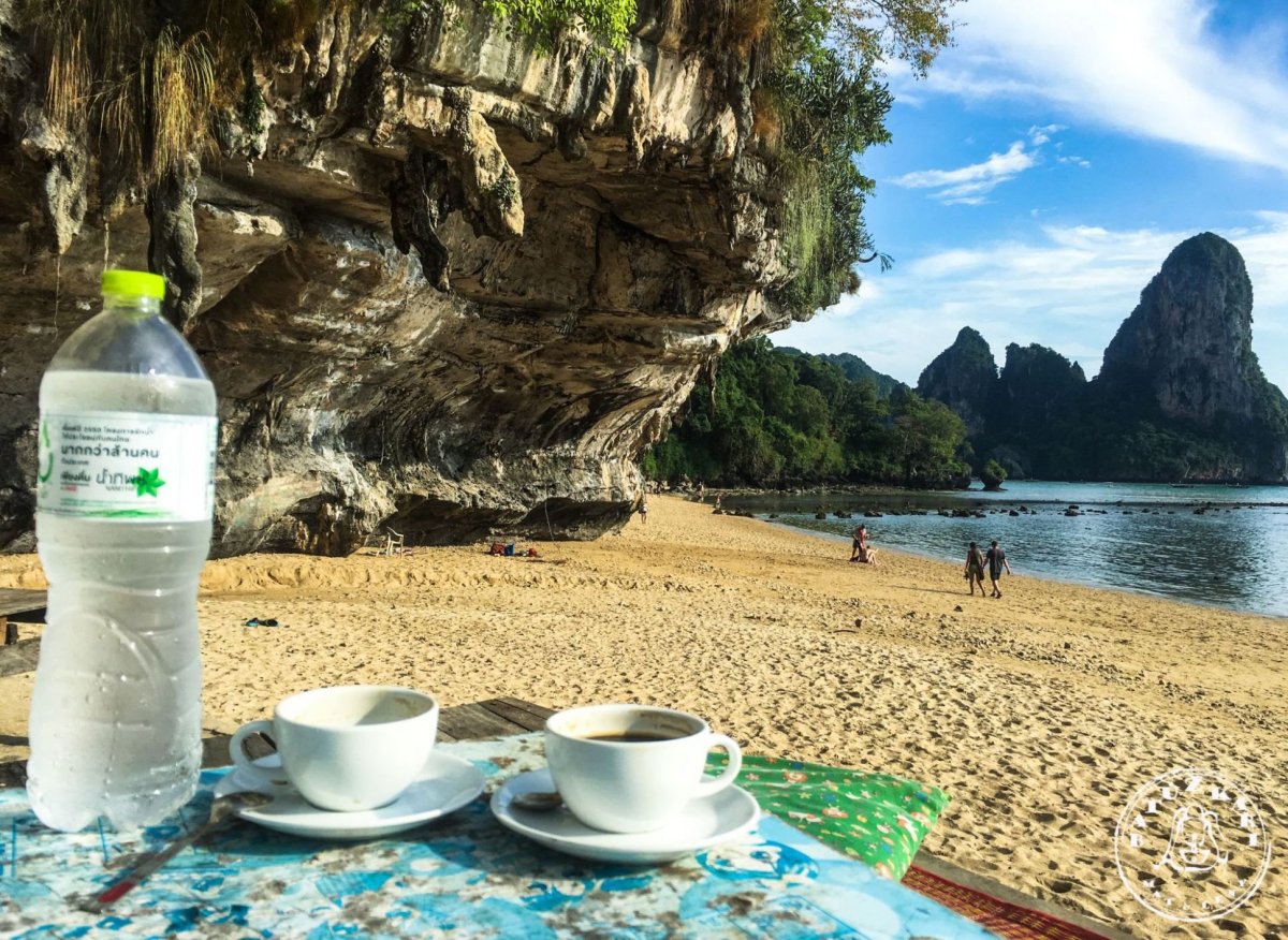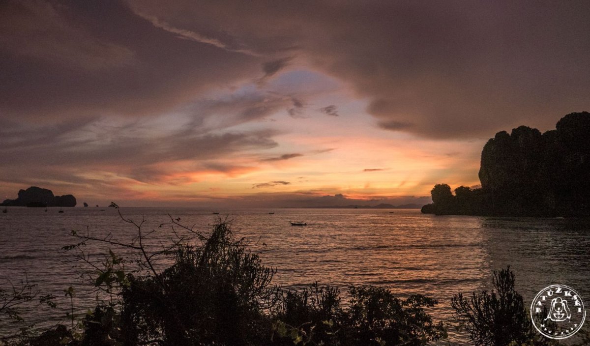 Po 16-ti hodinovém spánku jsme se v poledne probudili do slunečného dne. Dali jsme si snídani a oběd najednou, samozřejmě nechybělo ani kari, ani ananasové lívance, a vyrazili jsme prozkoumat místní pláže Tonsai a Railay beach. Při odpolední kávě jsme pak obdivovali místní horolezce jak šplhají po hladké stěně útesu. Den jsme zakončili krásným západem slunce, večeří a koktejlem v místním baru…