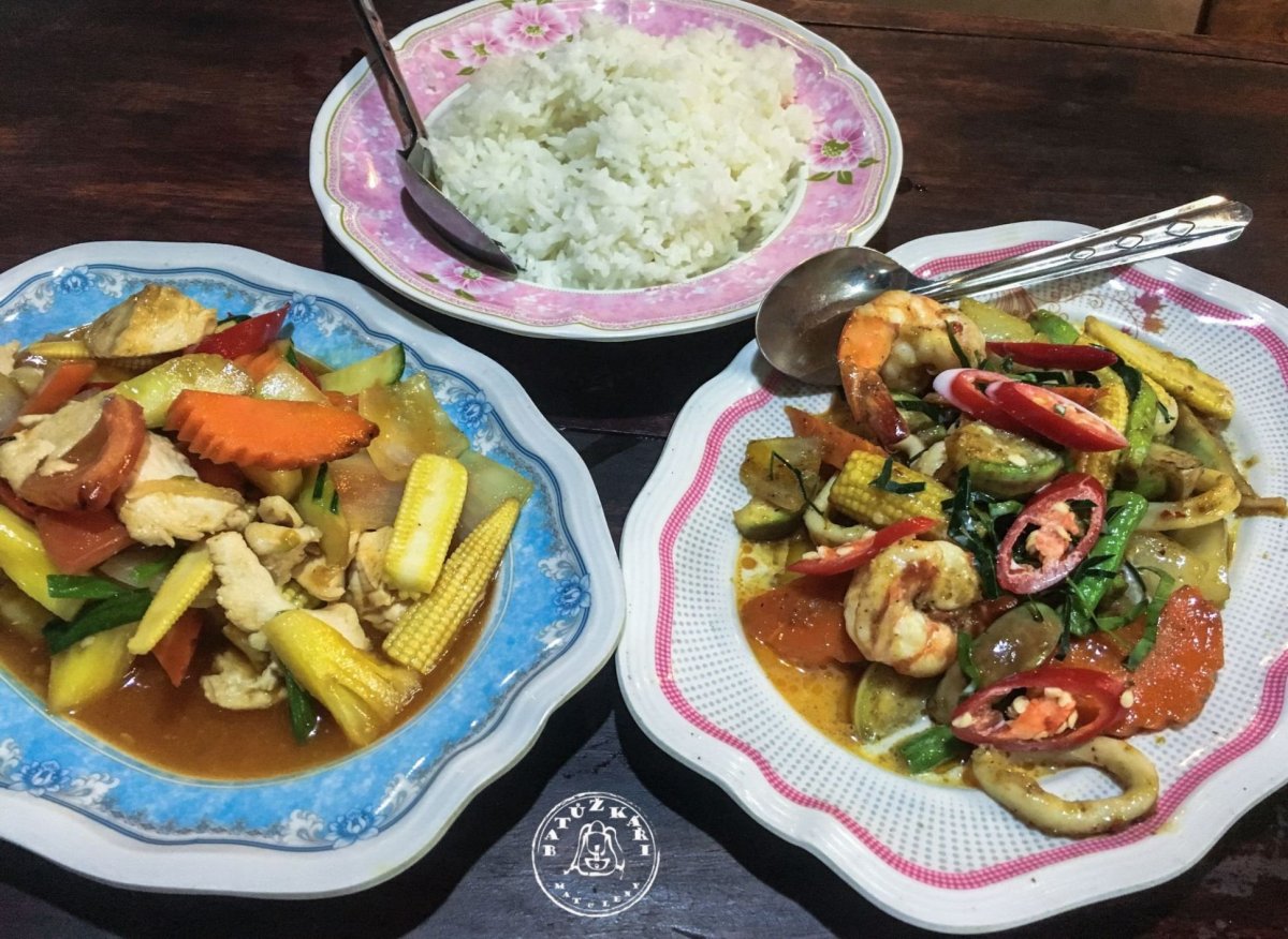 Zbylé dny jsme měli zůstali na dietě (sbohem kari na všechny způsoby, sbohem Phad Thai), tousťák a banány museli stačit. Jenže když na vás ze všech stran útočí všechny ty vůně jídel, i třeba ten jejich ledový čaj s mlékem, nedalo se odolat. Zajídali jsme to spoustou rýže, abychom aspoň tak ošálili náš žaludek, a to snad i trochu pomohlo….
