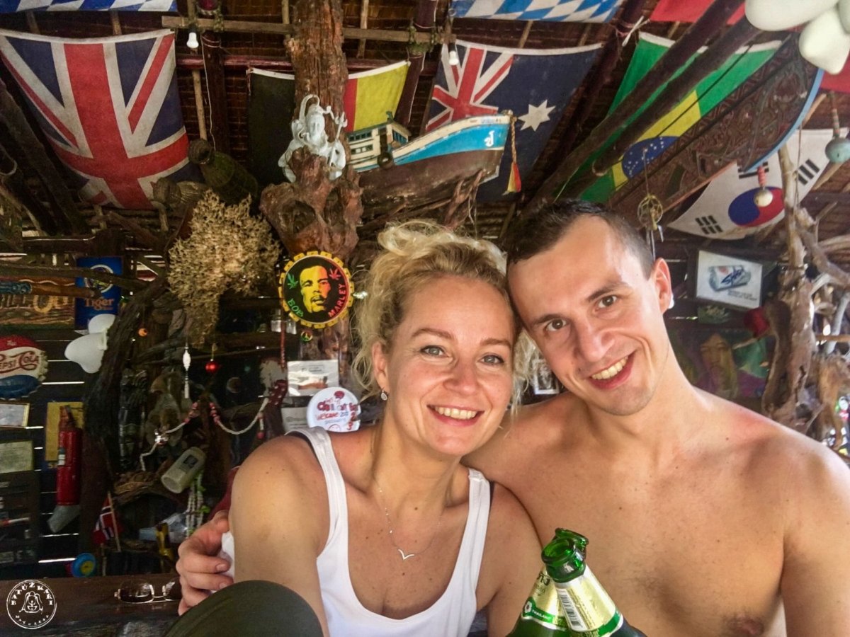 Podle GPS hledáme naše úbytko. Většinou si nevybíráme nic drahého, ale musí nás něčím okouzlit. Tentokrát jsme vybrali úbytko s názvem Chill out bar&bungalow. Je postavené ve stylu reagge a z každého rohu kouká podobizna Boba Marleyho. Kolem baru jsou jednak klasické stolky a lavice, ale přijemnější jsou prostory na ležení se spoustou polštářů určené jak k relaxu přes den, tak k mejdanům večer.