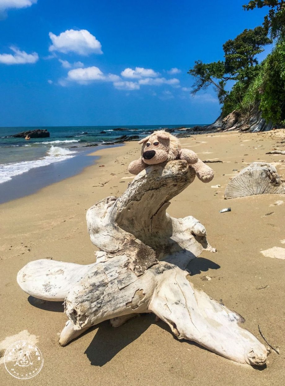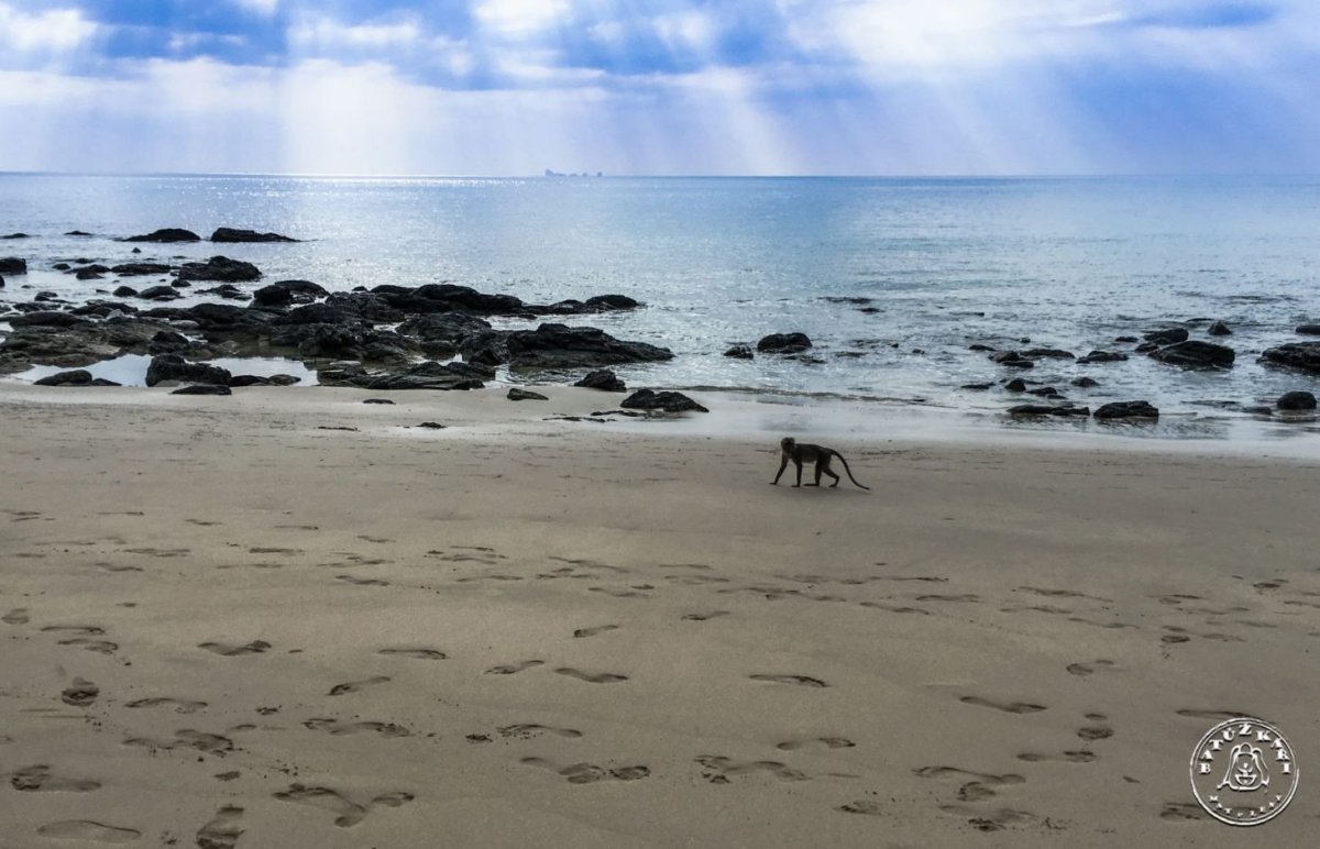 Došli jsme až na druhou stranu a tady zase byly opice, spóóóusta opic. Žraly malý krabíky. Vytáhly je z děr, ulomily nožičky a sežraly. Dělat to my lidi, stojí tu už zástupy od Greenpeace a protestujou proti týrání krabíků.