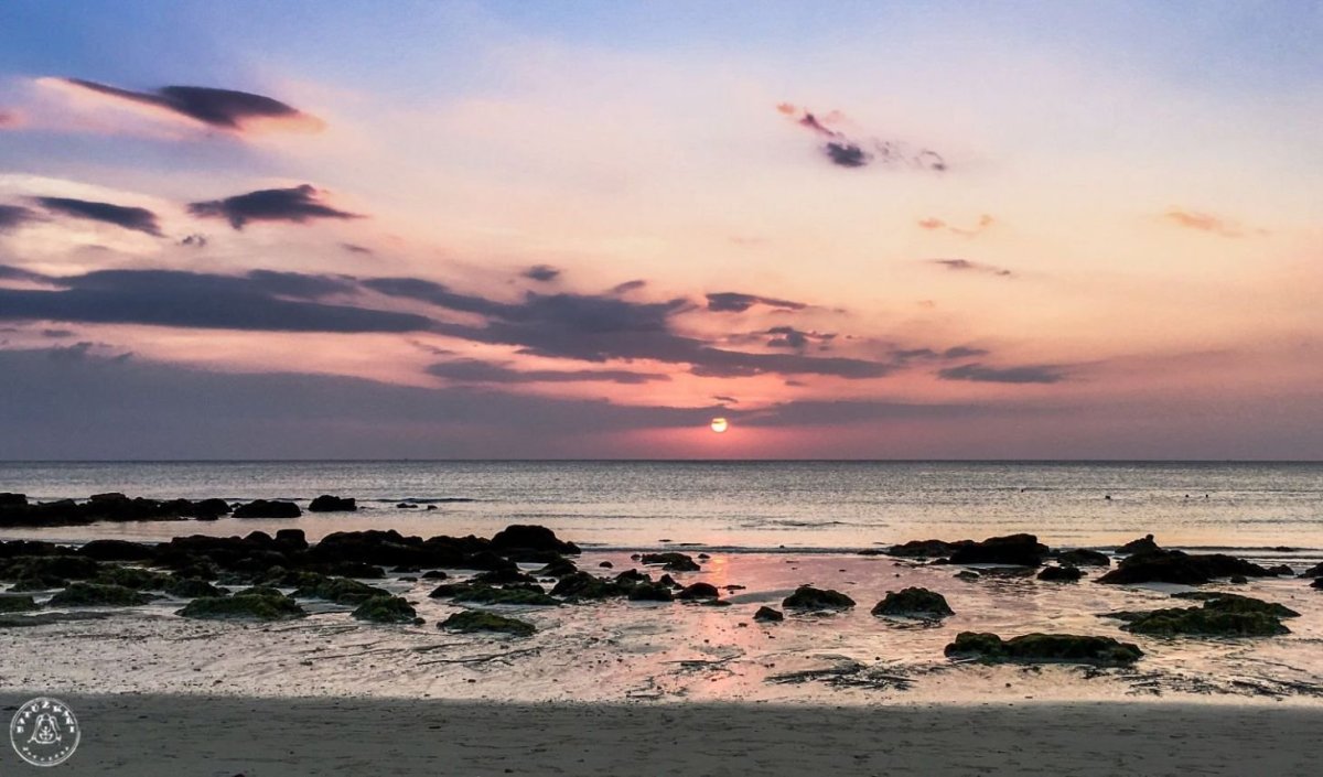 Byla to nááádhera. Jen jsme otevřeli dveře a vykoukli ven, užasle jsme zírali.. Malý levný resort Tanjung Puteri Motel, který jsme si vybrali byl hned u moře. No, u moře. To bylo asi jediné mínus. Celou noc jsme poslouchali burácení moře, které naráželo na pobřeží, a teď moře nikde… Byl odliv. Každopádně okolí resortu i samotný resort byl krásný. Obklopovala ho rozkvetlá zahrada. Mezi hotelem a pobřežím byly postavené lavičky a stolky, kde se dal jednak pozorovat krásný západ slunce, ale i vypít ranní kávu, či piknikovat po celodenním plážingu 🙂