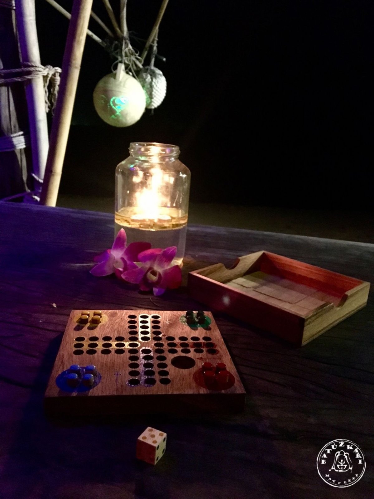 Poslední večer jsme zůstali na pláži. Byla krásná noc, byl odliv a celá pláž, která se táhla daleko na obě strany, byla ozářená osvětlenými restauracemi, bary, hořící olejové lampy ohraničovali prostor jednotlivých resortů, stolky byly postaveny až skoro u moře a lidé u nich sedící, vlny skoro omývali nohy. My si vybrali jeden bar, kde hrála živá hudba, dali jsme si koktejl a užívali poslední chvíle na Lantě.