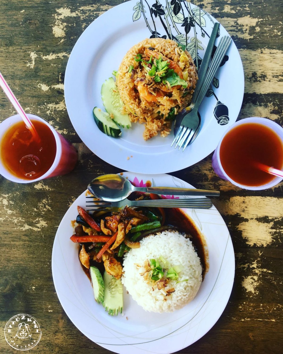 V první řadě jsme potřebovali peníze.Tady nejsou ani banky, ani bankomaty, ani supermarkety a ani v restauracích karty neberou. Aspoň ne tady v těhle končinách. Všechno se odehrává u letiště, tedy přesněji na Cenang beach. Pokud potřebujete peníze, skútr, něco koupit, musíte prostě až tam. Kohokoliv se zeptáte, pošle vás na Cenang beach. Proto i my jsme jeli sem. Cestou jsme jeli kolem letiště, tak jsme nejprve zkusili štěstí tam. Kde jinde by vám měli vyměnit peníze než na letišti, že!?! Huráááá, máme prachy, můžeme jíst. Jeli jsme na tu jejich Cenang beach. První jídlo co jsme ucítili, a už jsme brzdili. Mňam, první malaisijské jídlo….