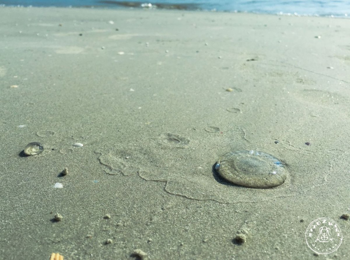 Řádně posilněni jdeme na pláž, daleko to není, přecházíme silnici a za řadou krámků a nízkých, asi hotelů, máme před sebou opravdu krásnou, širokou, bílou, pláž. Je zajímavé, že se skoro nikdo nekoupal, moře bylo krásné. Našli jsme si místo a vlítli do vln. Au au au, už víme proč. Moře bylo plné maličkých medúz, které na písku vypadali jako malé bublinky. Rychle jsme to zabalili a jeli jinam. Vždyť jsme na ostrově, tady je spousta pláží.