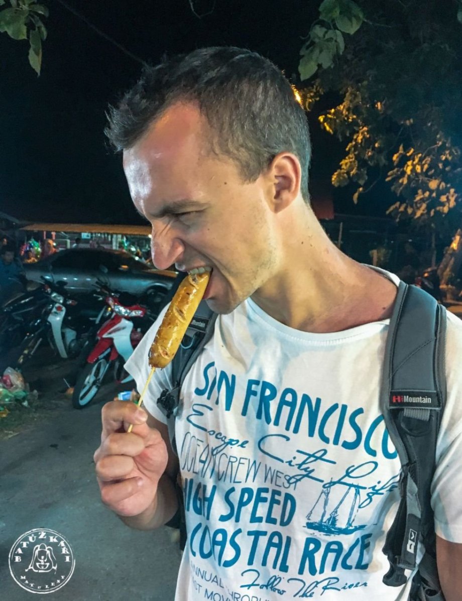 Cesta byla zajímavá. Museli jsme několikrát zastavit a zkontrolovat navigaci jestli jedeme správně. Najednou jsme uviděli spoustu aut, skútrů a spoustu světel. Byla to tržnice. To si přece nemůžeme nechat ujít. Zastavujeme a jdeme to prozkoumat. Nééé, že bychom měli hlad, ale to se nedá. Co stánek to jiné jídlo. Jiná vůně. A těch barev… Nevěděli jsme co dřív. Sladký, slaný, ostrý…. Co jsme neochutnali, to jsme si nechali zabalit domů. Totálně přejedený, obtěžkaný spoustou taštiček s jídly, sedáme na skútru a odjíždíme.