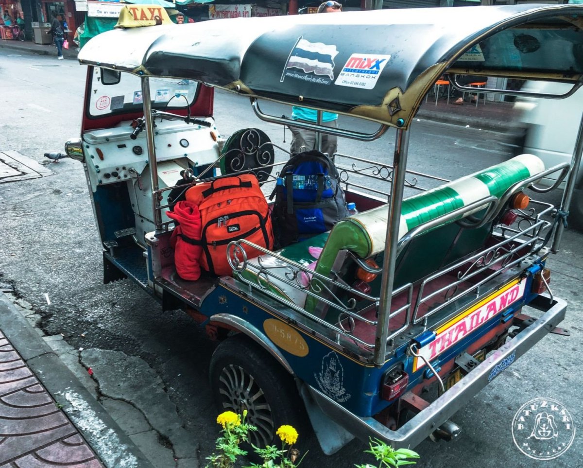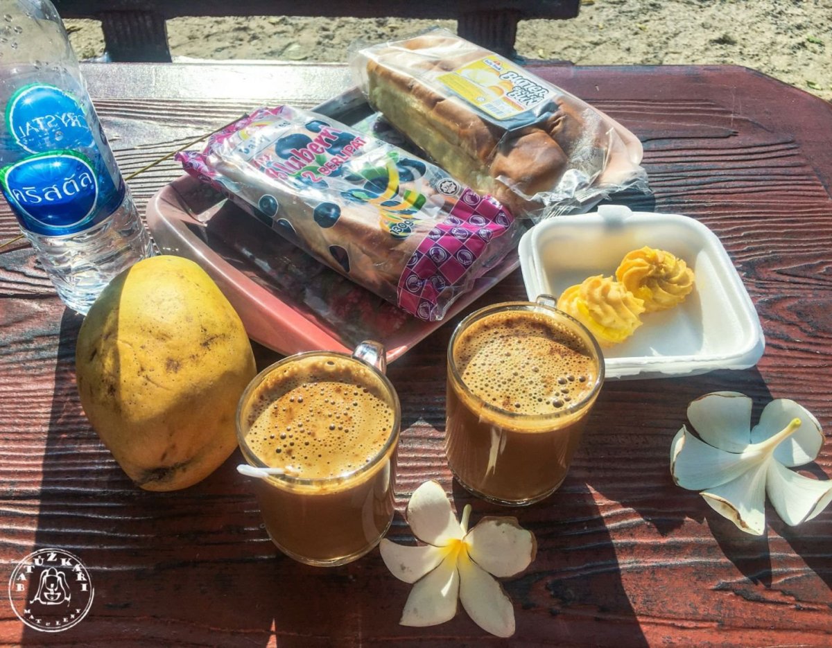 Po příletu do Bangkoku v 01:20 jsme jako první řešili lokální SIM kartu a přesun na druhé, 40km vzdálené letiště. Bohužel jsme zjistili, že Shuttle bus jezdící mezi letišti zdarma,funguje pouze od 05:00 do 24:00. Nezbylo nám nic jiného než vzít taxi. Na stanovišti bylo kolem stovky lidí, mysleli jsme, že budeme hodiny čekat, ale z automatu na taxíky nám hned vypadlo číslo jednoho z taxikářů, který tam stál už připravený. Auto ani řidič nebyli nejnovější, tak jsme byli vůbec rádi, že auto dojelo. Jsme tedy na dalším letišti a konečně můžeme trochu vypnout. Dáváme si pravé thajské jídlo a čaj se šlehačkou a skořicí.