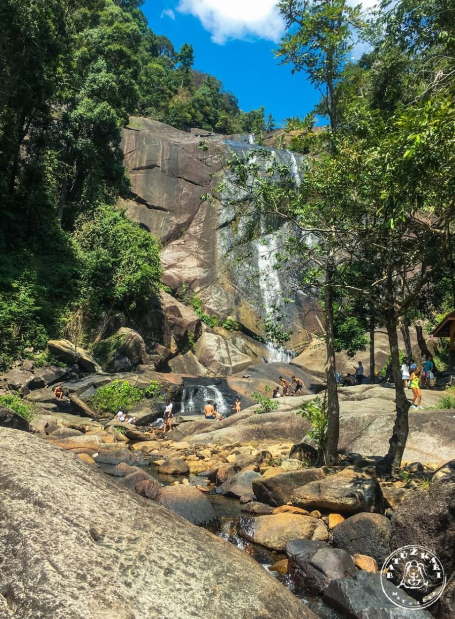 Má krásný název, jsme na něj zvědaví. Místní ho znají jako Telaga Tujuh. Seven Wells je pojmenován podle sedmi přírodních bazénků, které voda vytvořila na různých úrovních nejvyšší hory Langkawi –Mount Mat Cincang. Říká se, že v bazéncích na vrcholu se potkávají víly. Celkový jeho spád je 91 metrů.