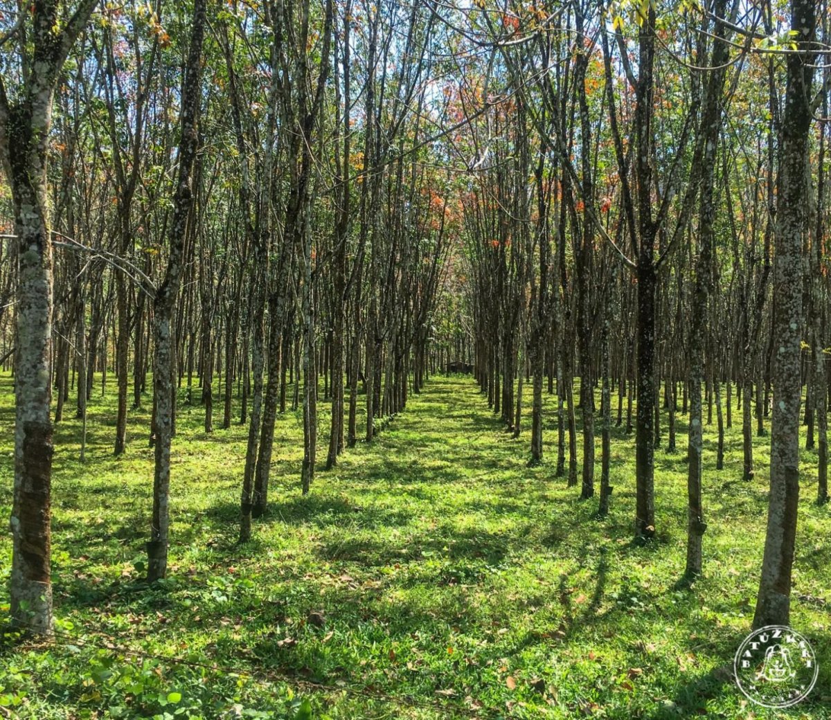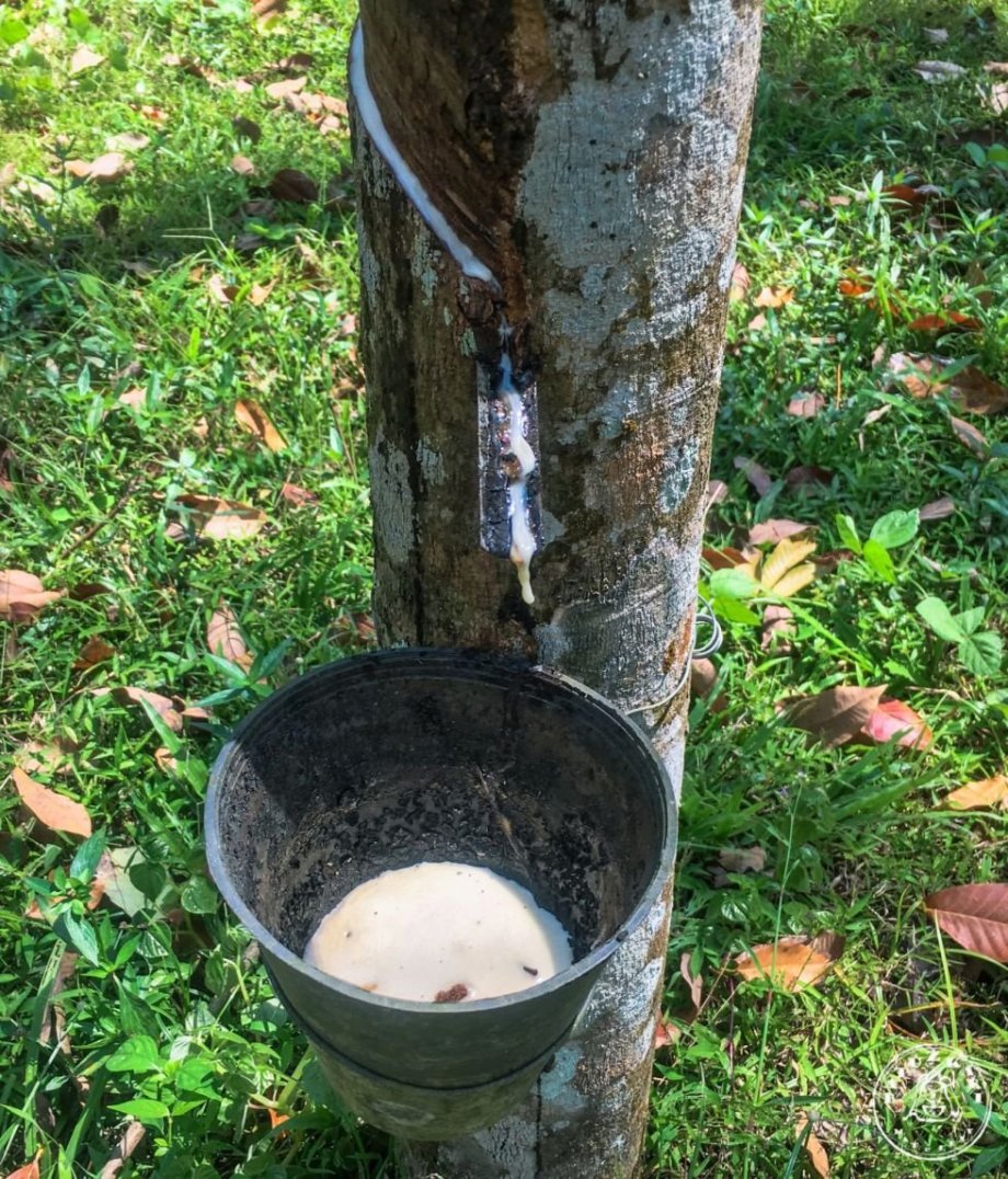 Ještě jedna zajímavost. Každý den jezdíme kolem zvláštního lesa. Každý strom tu má ke kmeni přidělaný kyblíček. Když už jsme jeli asi po čtvrtý kolem, nedalo nám to, zastavili jsme a šli jsme se podívat co tam vlatně je. U každého stromu byla kolem kmene v kůře vyřezaná cestička a na jejím konci byl přidělaný kyblík. V kyblíku pak byla bílá hmota. Tak už víme…Kaučukovník je to, a v kyblíku je latexové mléko, ze kterého se vyrábí guma na gumování.