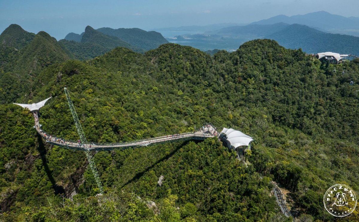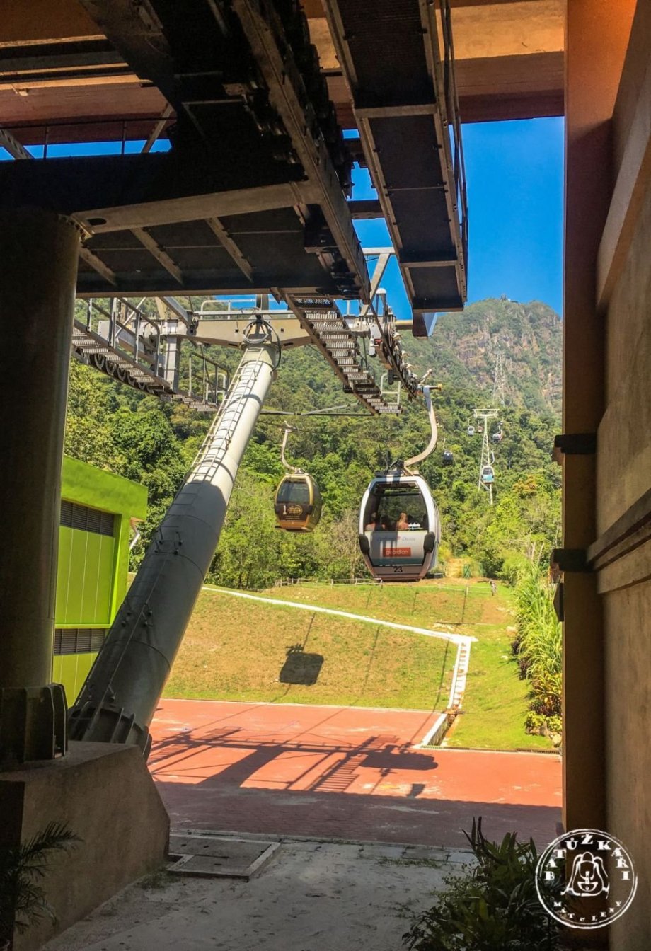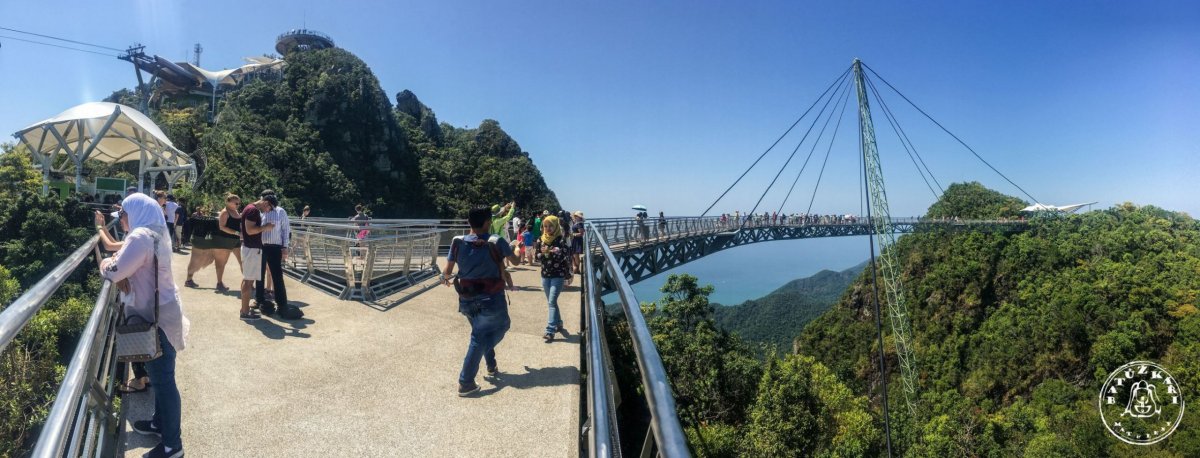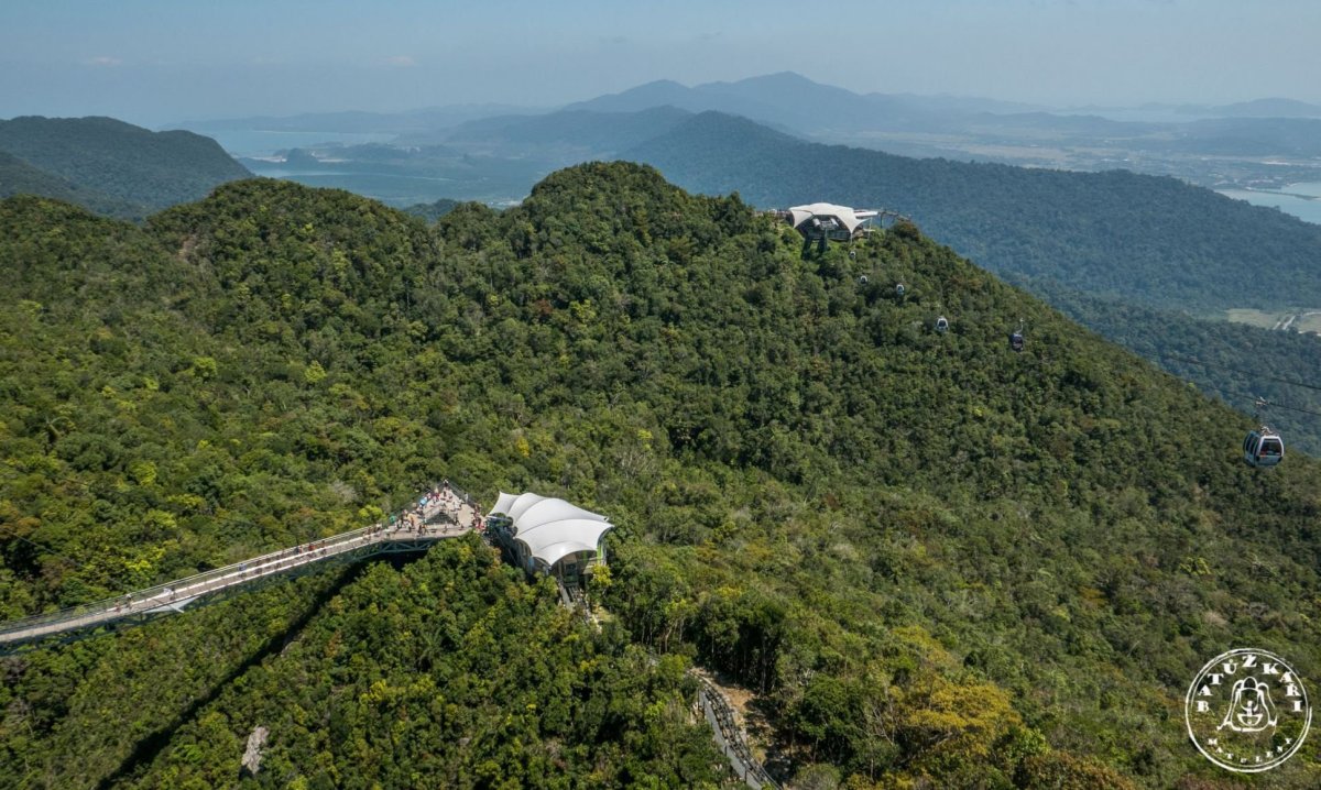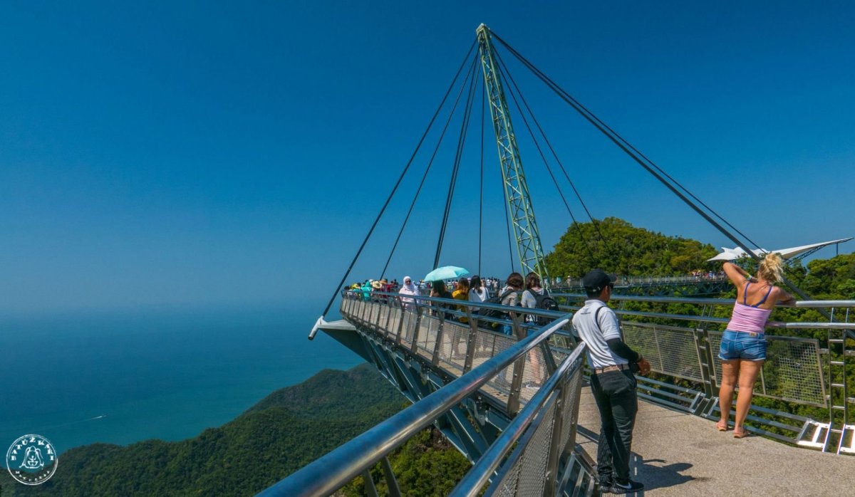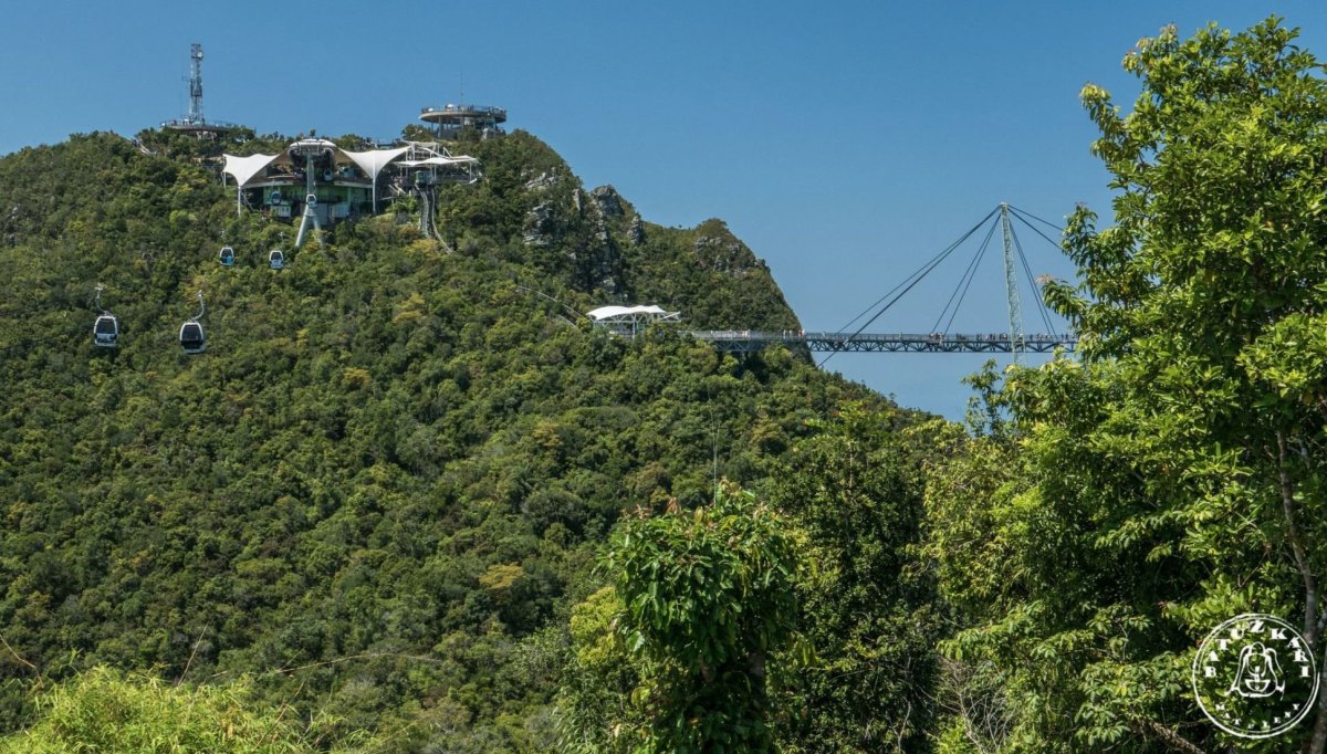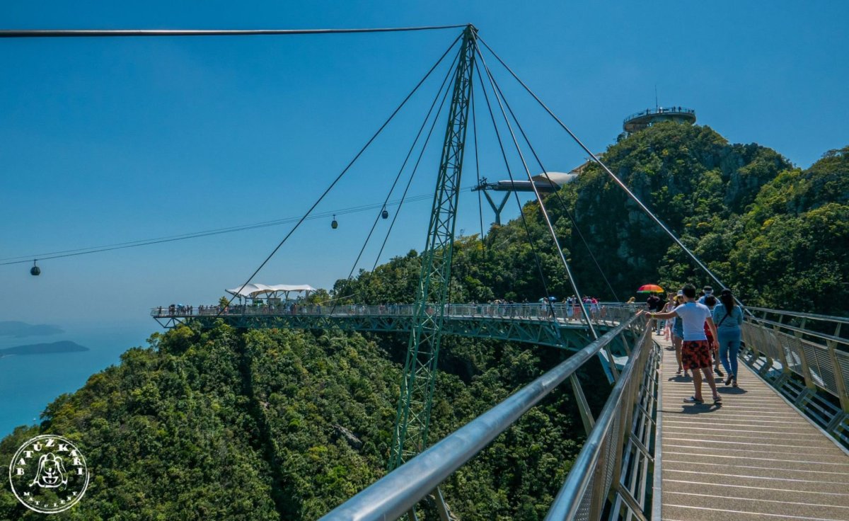 Jízda lanovkou je opravdový zážitek, nejen že se jedná o nejprudší lanovku tohoto typu na světě, ale výhledy jsou nezapomenutelné. Jednu chvíli kabinka stoupá snad kolmo vzhůru. Přehoupnout se přes samotný pilíř je zážitek zase pro váš žaludek. První lanovka vyjede až k přestupní stanici, kde je vyhlídka a je krásný pohled na most. Další lanovkou se dostanete až pod vrchol hory odkud pak můžete pokračovat po schodech nahoru na samotný vrchol a kochat se pohledem na celý ostrov, nebo po schodech dolů (samozřejmě za poplatek, ten je 5MYR) projít kouskem džungle a dostanete se na samotný most.