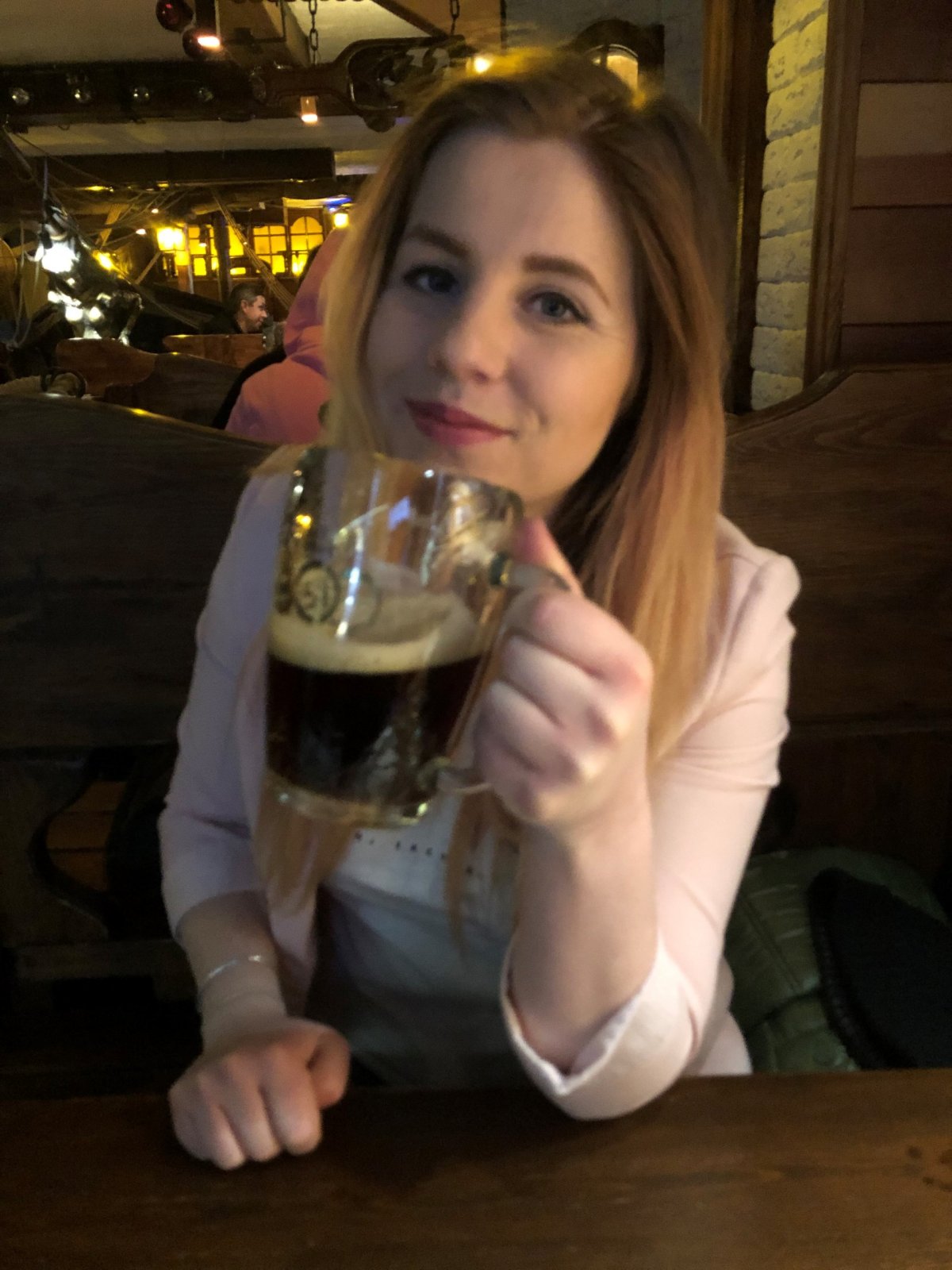 V restauraci bylo poměrně rušno, tak už jsem vlastně zjistila, kde se všichni schovávají, když bylo všude tak prázdno. Objednala jsem si černé pivo a bylo moc dobré. Na jídlo jsem si dala maso s omáčkou a brambory (zase ty brambory), ale už si nevzpomenu na název. Nicméně to bylo výborné, připomínalo mi to výpečky. Pak ex objednal pochutiny k pivu, nejprve jsem si myslela, že jsou to kolečka nějakého sušeného masa. Bylo to takové hodně tuhé a mělo to divnou chuť. Úplně mi to nejelo, snědla jsem pár koleček. Pak jsem zjistila, že jsem jedla koně.