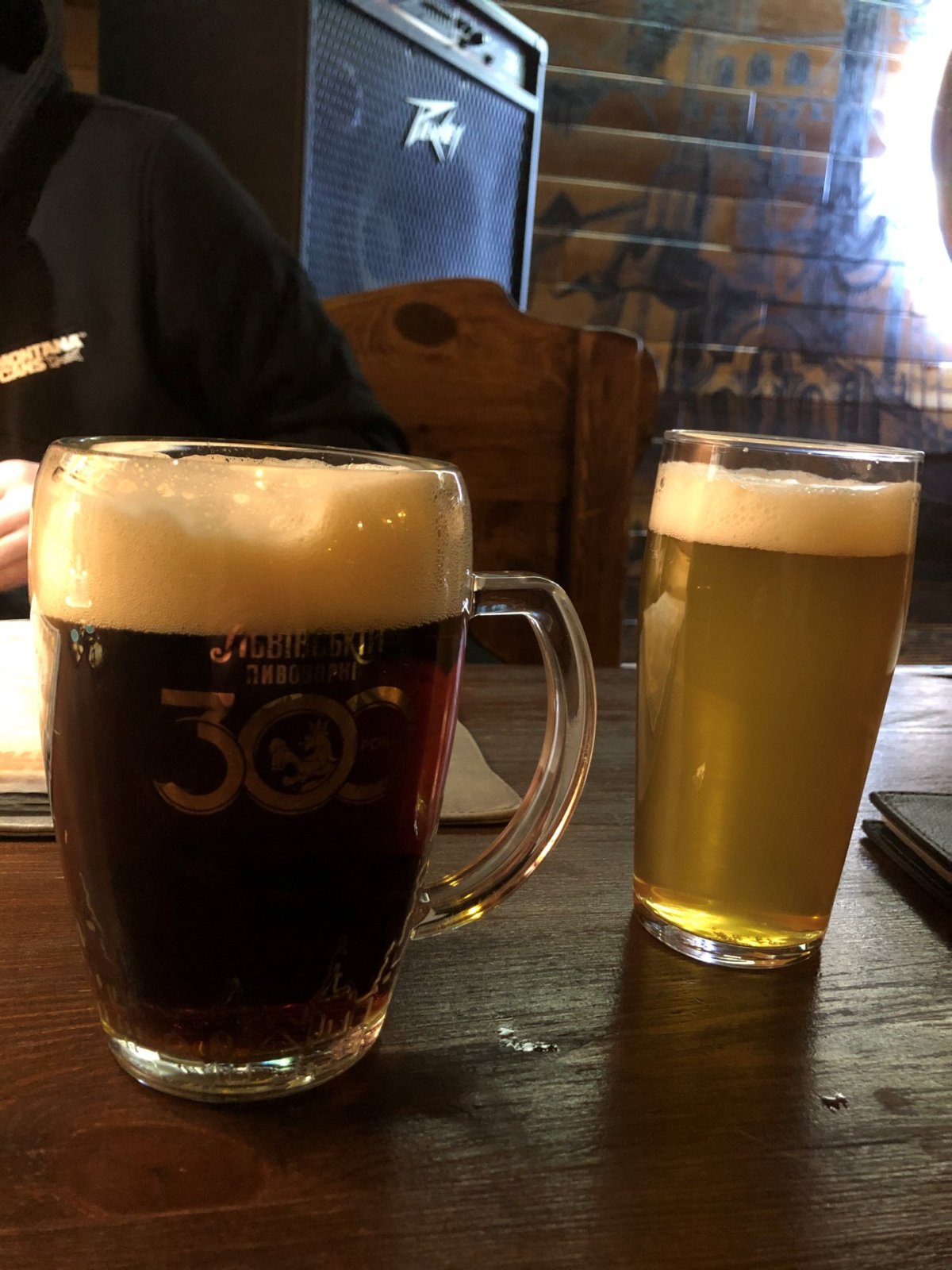 Na druhý den jsme si trochu přispali a ze snídaně se stal oběd. Zašli jsme do jedné hezké restaurace v přírodním stylu, vše bylo ze dřeva. Jediné, co mě zarazilo byl suchý záchod, který měli skoro všude.. Dala jsem si pravý ukrajinský boršč a byl výborný. Pak jsem zvolila brambory s vajíčkem, koprem a uzeninou, což mi bohužel vůbec nechutnalo. Nápad to nebyl špatný, ale celé se to válelo v oleji a bylo to na mě moc mastné. Těžko říct, zda to tak má být nebo to byla jen chyba kuchaře. Stále jsem byla po tom večeru nějaká hladová, tak jsem se ještě zaplácala smaženou kapsou plněnou mletým masem a ta byla moc dobrá :) Pivo jsem v tuto dobu vynechala :)