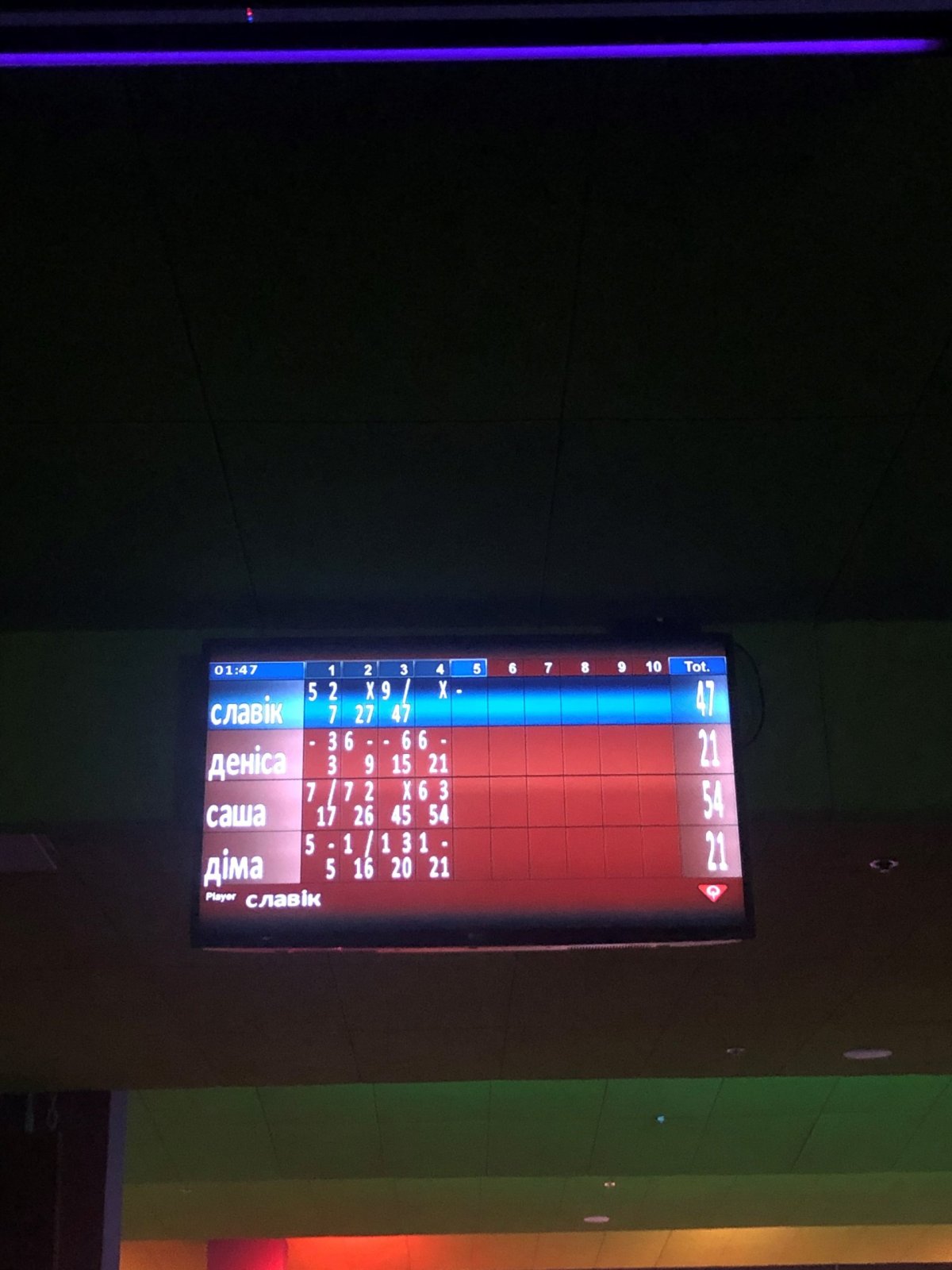 Po večeři jsme zašli na bowling s přáteli a hodně jsme se opili. Když ona ta ukrajinská vodka chutná prostě mnohem lépe. Normálně ji nepiju, ale tady to jinak nešlo. :) Tam to nešlo ani odmítnout. :)