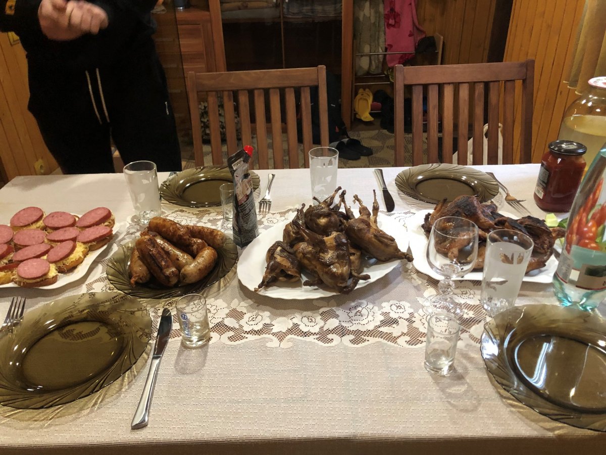 Na další den jsme jeli za město s kamarádem, u kterého ex pobýval, než jsem přijela. Jeli jsme k jeho rodičům (toho kamaráda) a byla jsem moc překvapená. Jeho rodiče měli obrovský a opravdu moc pěkný dům. K domu patřila i zahrada a pole. Na zahradě měli větší zahradní domek, kde byla i sauna a posezení. Sauny jsem se nezúčastnila. Jak je známo, Ukrajinci jsou velmi pohostinní a milují jídlo a alkohol, takže stůl podle toho vypadal. Alkoholu jsem se pro jistotu vyhla. :)