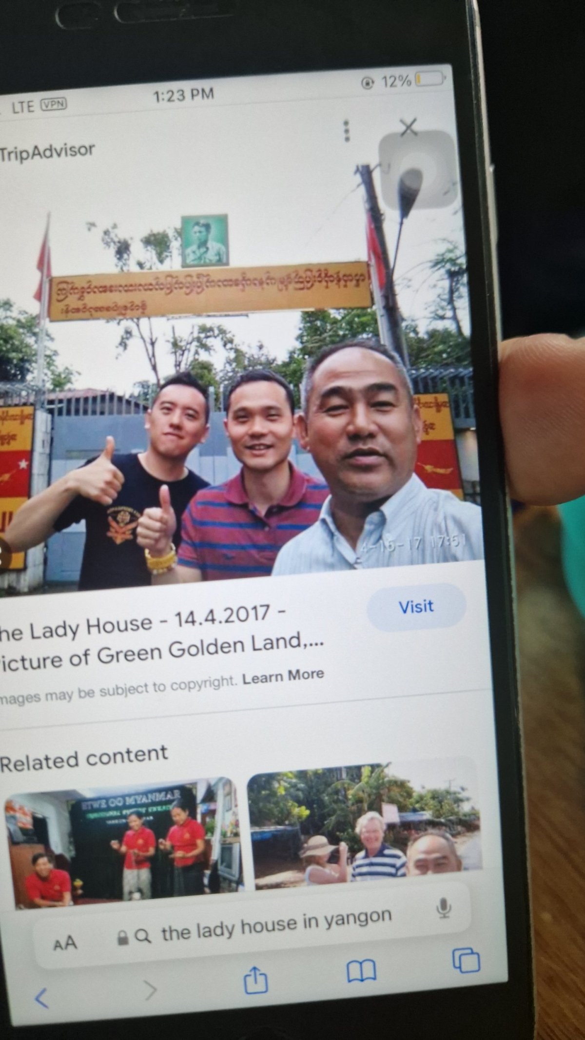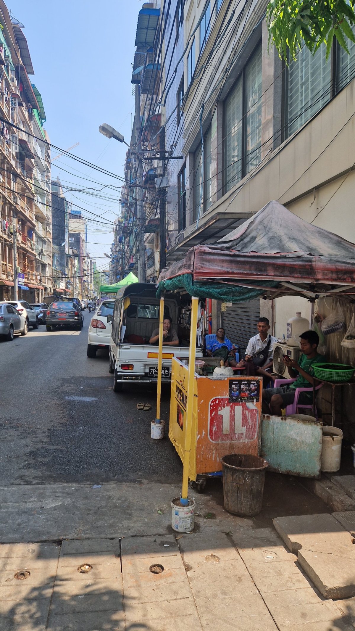 S novým účesem se toulám ulicemi a narazím na chlapíka prodávajícího na plachtě na zemi spoustu krámů – od nádobí, přes elektroniku z nultých let a ovladače asi tak na všechno, po staré barmské bankovky. V 80. letech vydávala barmská banka nominály o hodnotách 15, 35, 45, 75 a 90 kyatů, prý protože tehdejší prezident byl fanda numerologie. Tři nejkrásnější si za 1000 MMK rád vezmu a přidám do své sbírky. Vybaven novými bankovkami beru Grab k Lady’s House. K mému zklamání je to fakt jen dům s vysokým plotem a vojenským check-pointem před vraty. Zpět bereme další Grab.