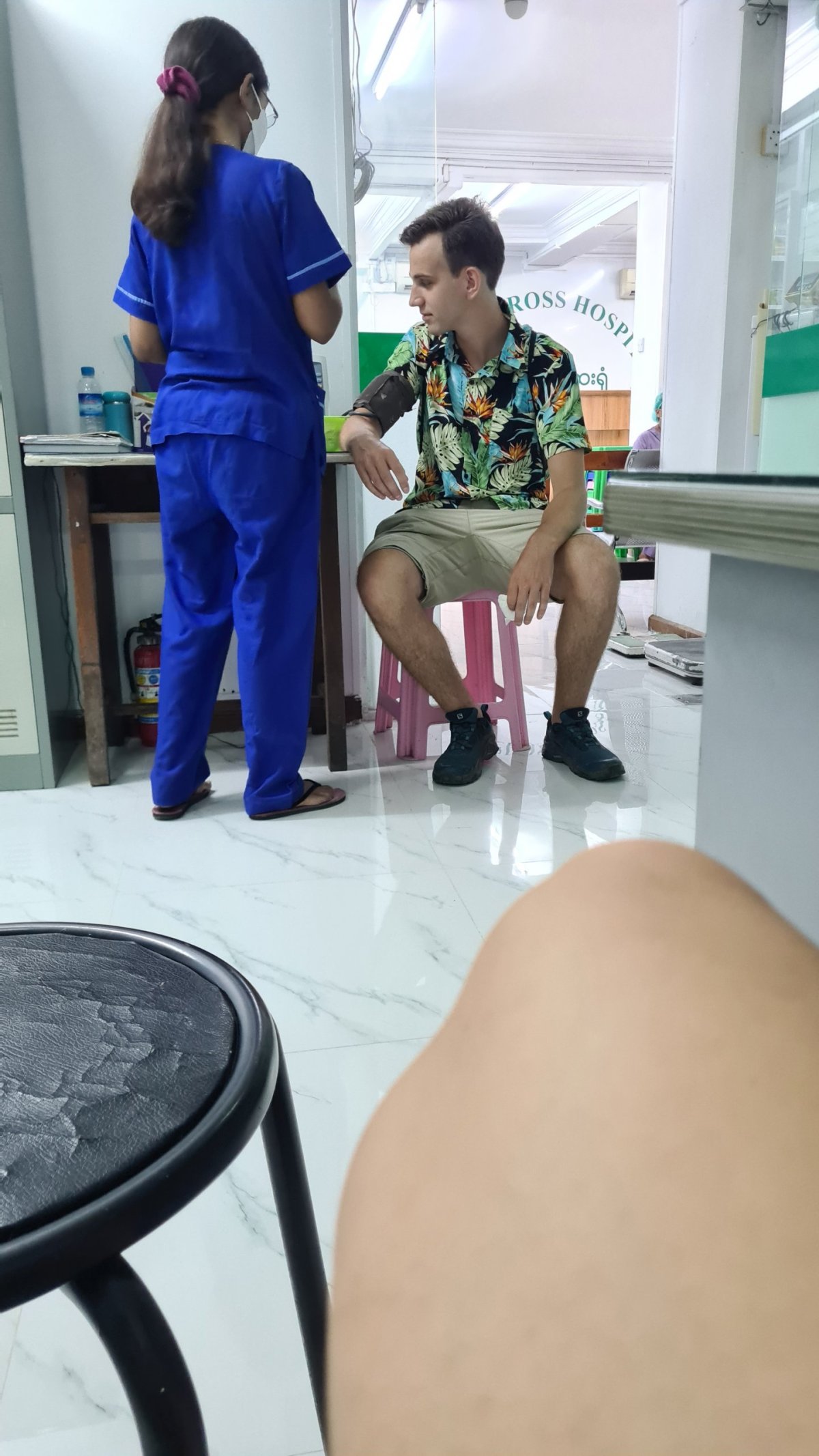 Koupit v nemocnici náplast je obtížnější, než se zdá. Nejdřív musí být zavolána doktorka, která mi zkontroluje tep, tlak a saturaci kyslíku v krvi, aby následně vyhotovila lékařskou zprávu. Až poté můžeme jít do lékárny a říct si kolik čeho chceme. Říkáme si, že když se vejdeme do 30 dolarů, tak to bude dobré. Nakonec platíme 10 korun za zprávu a 20 korun za náplast a dezinfekci. Takže až na tu komedii kolem, jsem vlastně spokojený a lékařskou zprávu přikládám do batohu k bankovkám, teď je z ní fajn suvenýr.