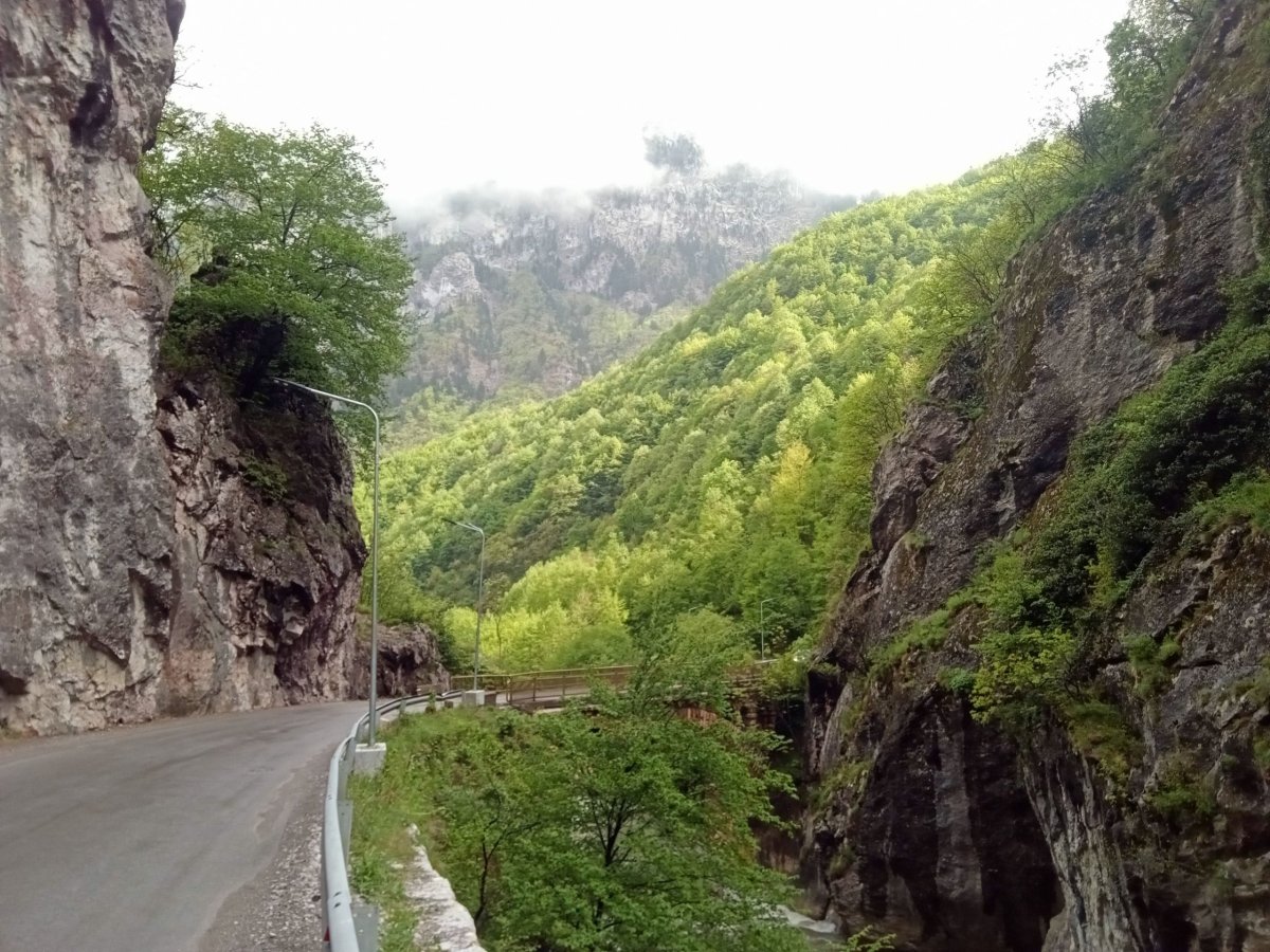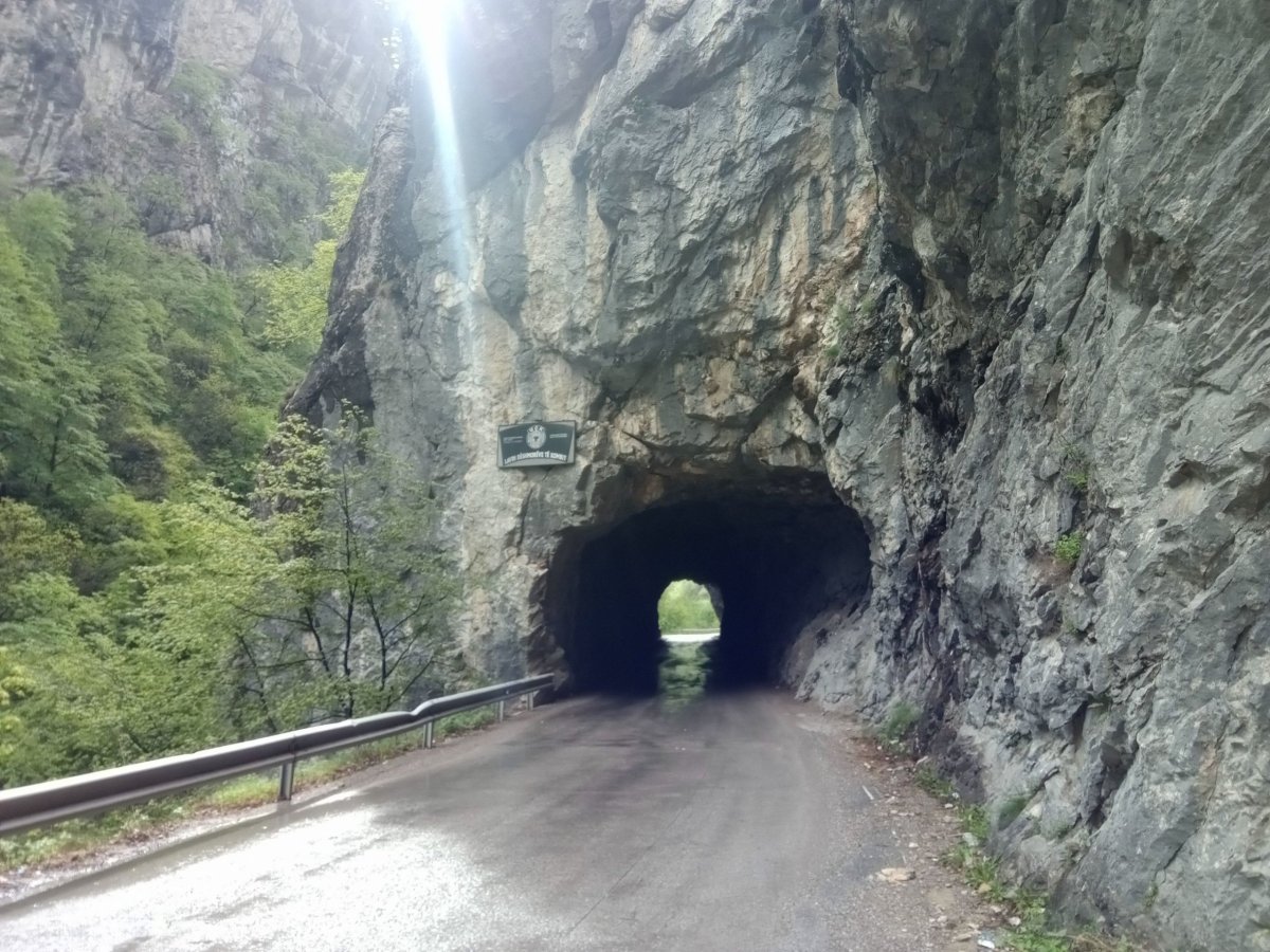 Později se počasí přece jenom uklidnilo a tak vyrážím pěšky po silnici do Rugovské soutěsky, která začíná hned za klášterem. Už po pár set metrech se nade mnou začínají tyčit obrovské skály a člověk si připadá naprosto titěrný v porovnání s nimi. Otáčím se až u vyraženého tunelu po několika kilometrech. Sice mě mrzí že nevyšel trip k jezeru, ale vzhledem k tomu že můj původní plán bylo tohle, ani zde si tak nemůžu stěžovat na to, že by mi něco nevyšlo jak jsem si původně přál. :) Při návratu do Peje se mi navíc podaří odlovit první kešku v Kosovu. :)