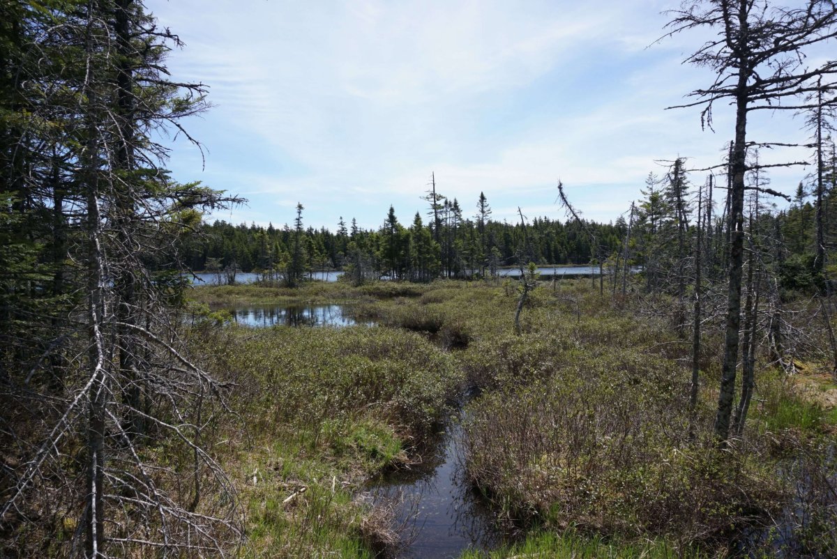Chvíli po druhé odpoledne jsem dorazil k Laverty Lake. Můj původní plán byl pokračovat k vodopádům Laverty falls. Je tam na mapě hezký okruh černé obtížnosti. Když jsem si ale spočítal, že bych se vrátil k jezeru večer a měl se brodit těmi bažinami a potoky potmě, přešla mě chuť. Upřímně, nechtělo se mi vracet ani za světla. Podle mapy měla být za rohem nezpevněná cesta až na silnici a po ní bych se vrátil k autu, ideálně stopem. Dobrá, to zní jako plán.