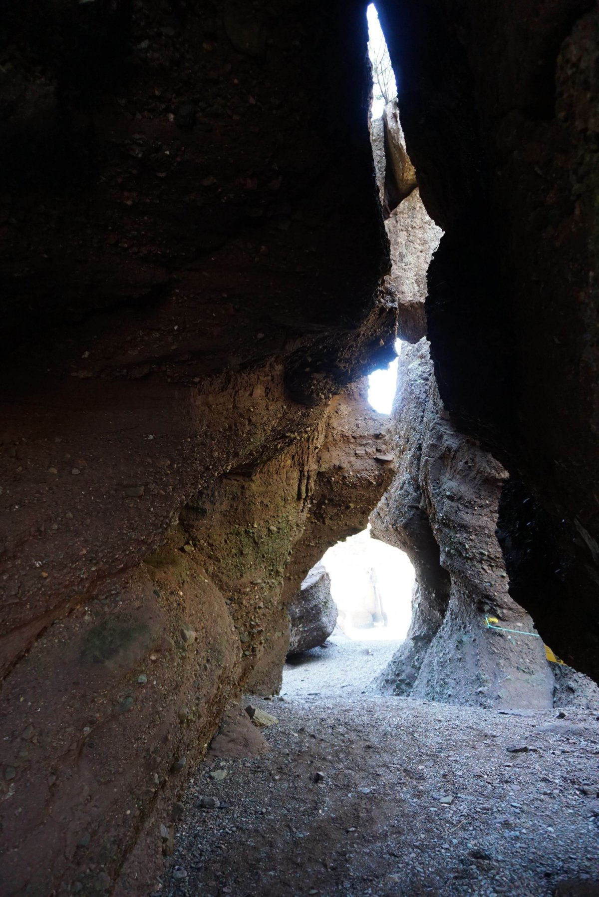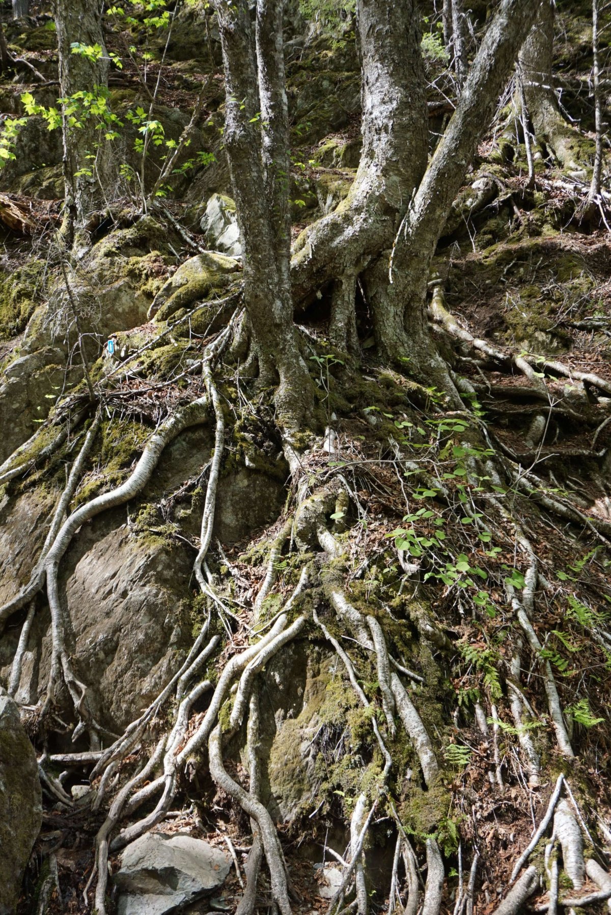 V půlce cesty totiž bylo parkoviště a další trail! Kouknu do mapy a je to Third vault fault. Změna plánu, zabočím na stezku a jdu. Tenhle trail je pro pohodlné turisty, chodníček je udržovaný, dokonce zábradlí a schody. Některé stromy mají kořeny dlouhé jako v Angkor Wat. Schody končí v korytě potoka. Všude se válí obří balvany. Vody teče málo, takže není problém skákat jako kamzík, sem tam shupnout dolů a po chvilce jsem u hezkého vodopádu. Pár minut si hraju s nastavením foťáku a zkouším různé expozice. Je to marné, fotograf ze mě nebude. Balím se a pádím zpět. Na cestě stopnu jedno auto, ale nějak si se slečnou nerozumíme a tak mě nesveze ani na silnici. Je horko, slunce pálí do týla a já si vykračuji po aslfaltce. Ušel jsem třetinu cesty, než mi snad šesté auto zastavilo.
