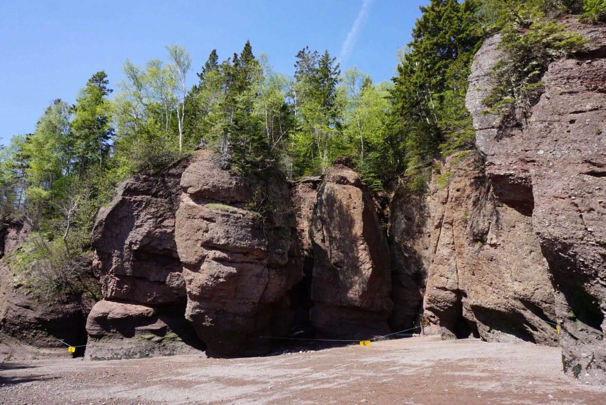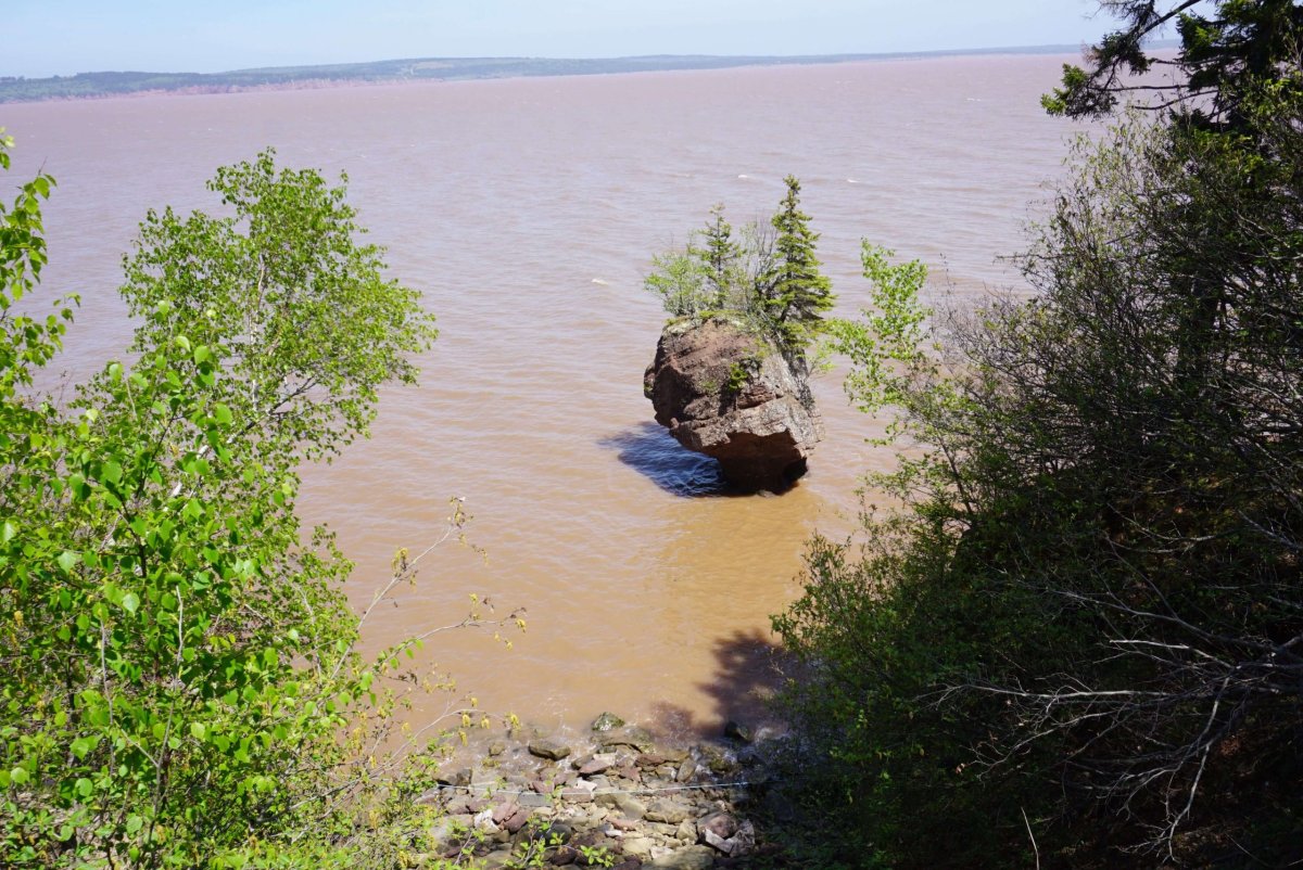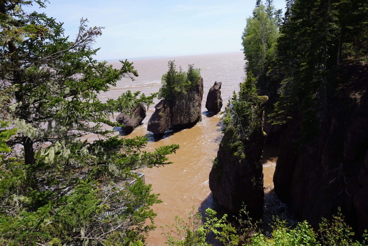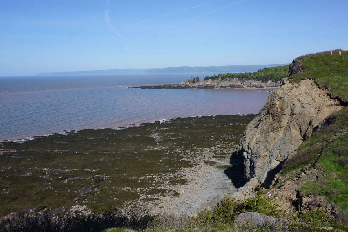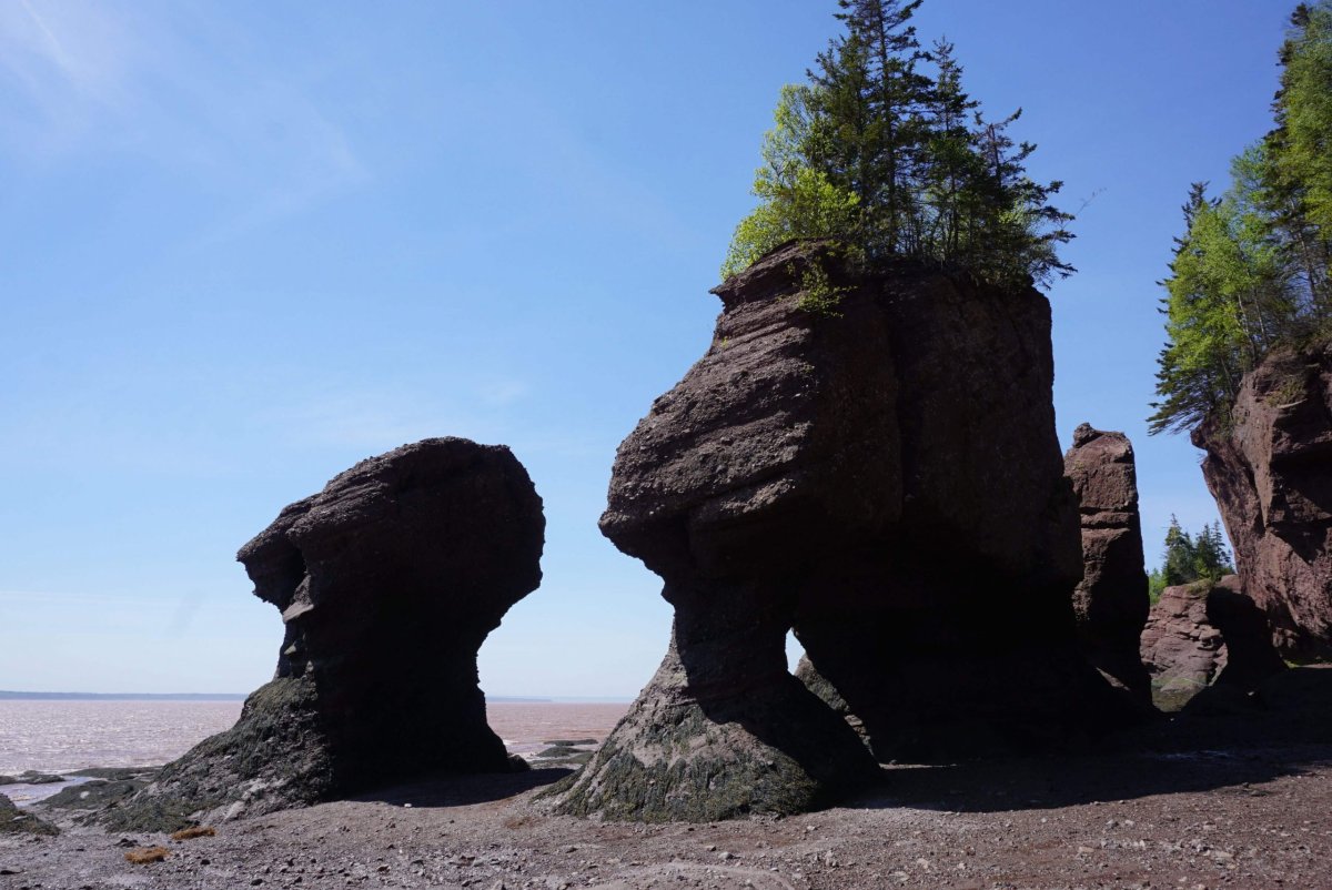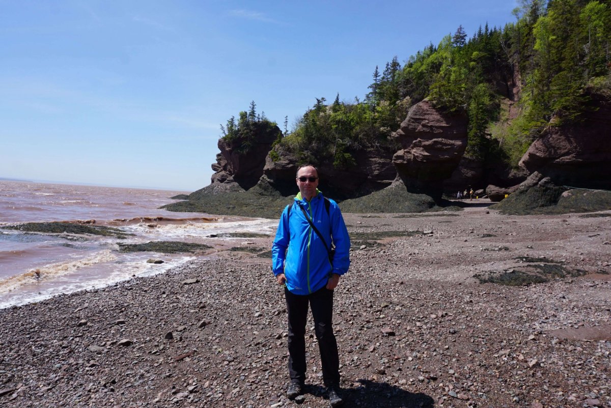 První zastávkou byl Cape Enrage. Cesta do kopce byla dlouhá, prudká a plná serpentin. Pak jsem dorazil na útes s báječným výhledem na krajinu. Odvážlivci se mohli sjet po zipline, nebo si vylézt na laně skálu. Nebo se jen tak brouzdat po mořském dně a hledat zkameněliny. Mě však poháněl spěch. Můj hlavní cíl byl Hopewell rocks a chtěl jsem je stihnout za odlivu. Na mapě to byl kousek, ale cesta trvala hodně dlouho a tak jsem místy šlapal na plyn více, než se smělo. Nakonec jsem dorazil na obří parkoviště včas, koupil lístek a sprintoval k hlavní atrakci.
