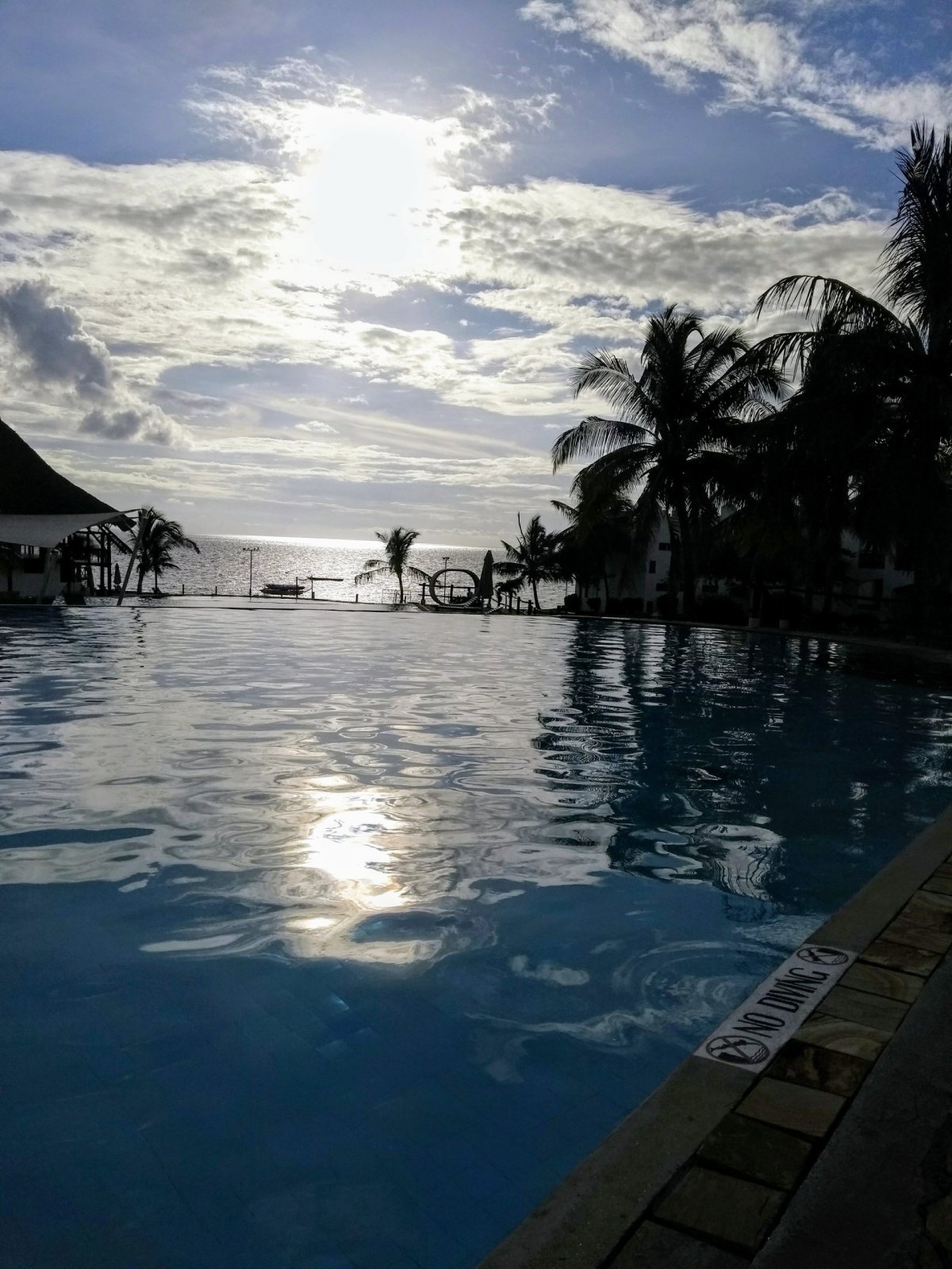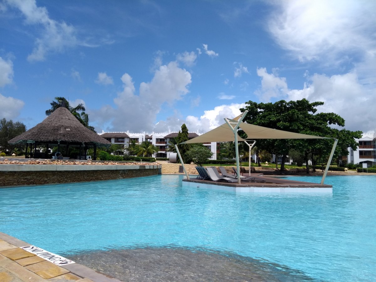 Postupně si taky vyzkoušíme všechny čtyři bazény, kdy samozřejmě největší úspěch má ten s bazénovým barem. I s tímto barmanem máme za chvíli velmi přátelské vztahy a díky tomu, že jsme zde velmi často úplně sami, máme možnost se dozvědět něco více o místních. Třeba to, že drtivou většinu pracovníků v turismu zde tvoří lidé z Tanzánie, skutečně místních ze Zanzibaru je minimum. Je to zřejmě tím, že turistický ruch se začal dříve rozvíjet v kontinentální Tanzánii a tepve později přišla popularita Zanzibaru, takže místní se teprve učí co a jak. Dozvídáme se, že náš barman funguje 6 dní v týdnu na 9-ti hodinových směnách, 1x za týden má volno. A takto pracuje po celý rok bez přestávky s tím, že pak 1x za rok odjíždí asi na 6 týdnů domů na pevninu. A pokud mu můžeme věřit, tak na takové pozici si přijde na cca 500 USD měsíčně.