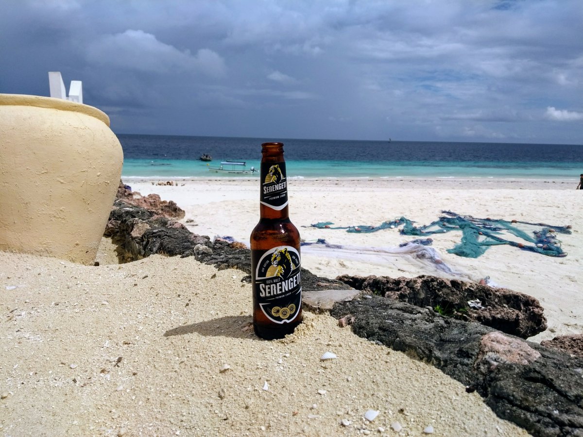 Jeden z barů rezortu je kousek u moře a taktéž unuděný barman je rád za drobné zpestření svojí šichty, takže nás poctivě zásobuje vychlazenými kuželkami piva, zde jak má být - půllitrovými. A když zjistí, že jsme ze země pivu zaslíbené, tak nám pak už po celý pobyt místo obvyklého a na Zanzibaru nejvíce rozšířeného piva Serengeti dává Pilsner Lager, který se skutečně odkazuje na původ a způsob výroby v naší Plzni.