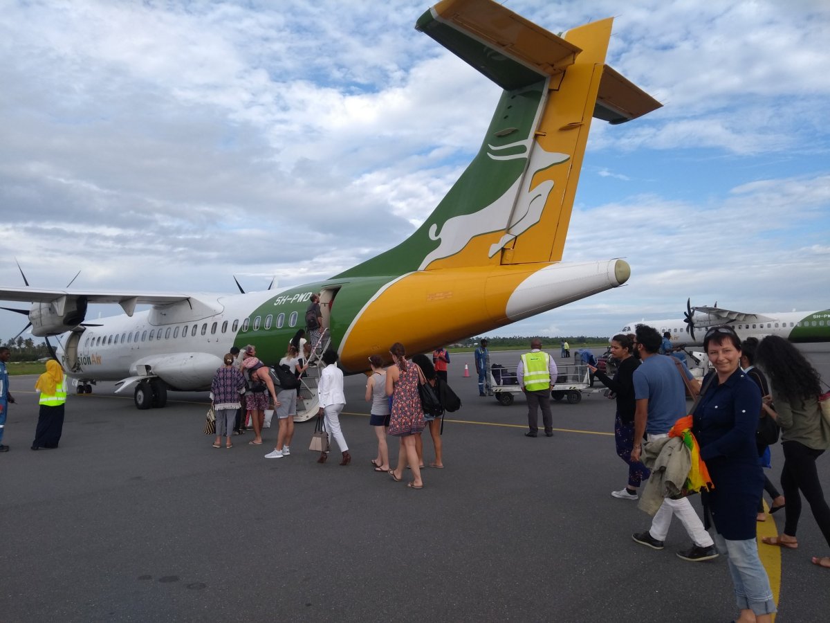 Naše cesta začíná nudným přeletem Vídeň – Amsterdam, kde přesedáme do modrého Jumba KLM. Z tohoto letu si pamatuji hlavně velmi bídný palubní servis, což jsme od této společnosti skutečně nečekali. Zajímavé je mezipřistání v Nairobi. Zde procházíme tolika různými kontrolami, že za chvíli ztrácíme přehled, která je vlastně která. Téměř o půlnoci nasedáme do vrtulového dvoumotoráku a absolvujeme krátký, asi 75 minut dlouhý, přelet na Zanzibar, letadlo je zaplněno možná z jedné třetiny.