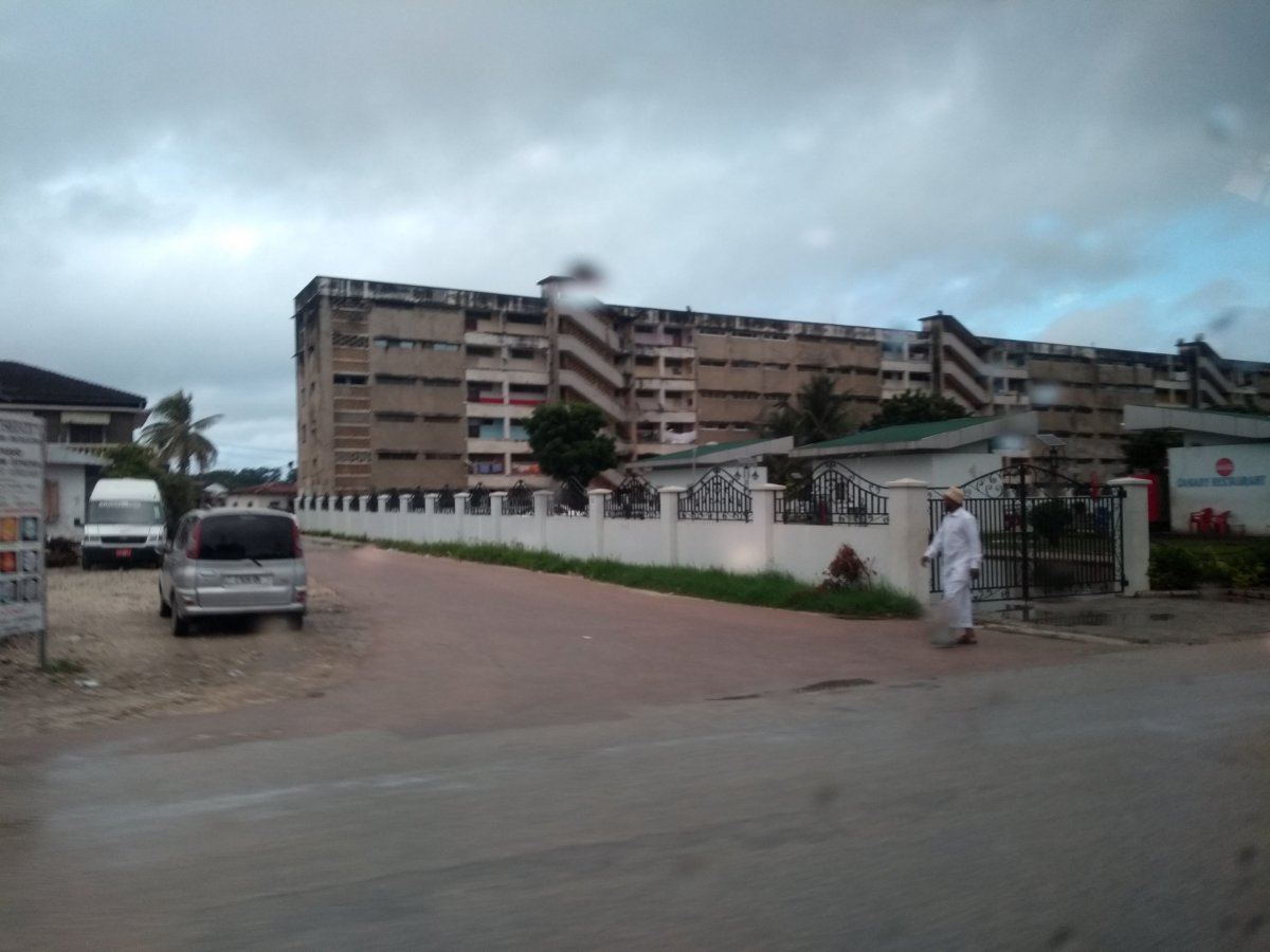Jak se blížíme k hlavnímu městu, občas míjíme už i domy „evropského standardu“. Samozřejmě s ohledem na nevábné okolí za vysokým plotem s ostnatým drátem, zamřížované a pod dohledem kamer. Pobaví také místo, kde se široká asfaltka z obou stran zužuje na malý most o šířce jednoho pruhu nad nějakým potokem – holt takový tu kdysi postavili kolonizátoři … Konečně se dostáváme do hlavního města, kde nás v centru zaujme několik dlouhých paneláků, jaké známe od nás. Jak by ne, v 60. letech minulého století se jednalo o soudružskou výpomoc našich tehdejších východoněmeckých sousedů nově vzniklé Tanzanii. Kdysi na místní poměry luxusní bydlení už ovšem na první pohled dostalo zabrat jak místním podnebím, tak svými obyvateli, takže tyto monumenty minulých dob dnes působí jako kulisa pro nějaké postapokalyptické sci-fi.
