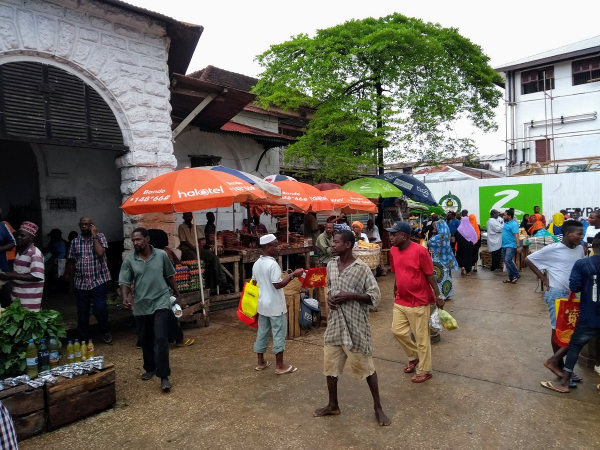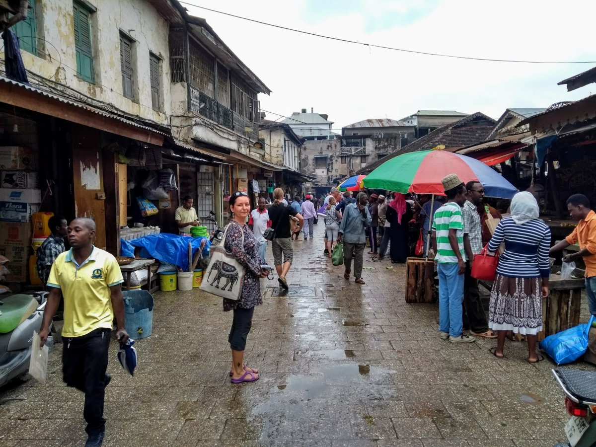 Dalším bodem programu je místní trh, kde lze koupit úplně vše. Procházíme rybím trhem i částí, kde se prodává drůbež nebo kozy. Místní nelibě nesou snahy ulovit pár záběrů, ale když máme průvodce, tak se to obejde bez dalších komplikací. Poté míříme do úzkých uliček starého města, které je unikátní tím, že zde bylo kvůli riziku devastujícího požáru zakázáno stavět ze dřeva, proto název Stone Town. Zajímavostí jsou portály masivních vstupních dveří domů, kdy podle tvaru jde poznat, odkud pocházel původní majitel – zda z Asie, Afriky či Evropy.