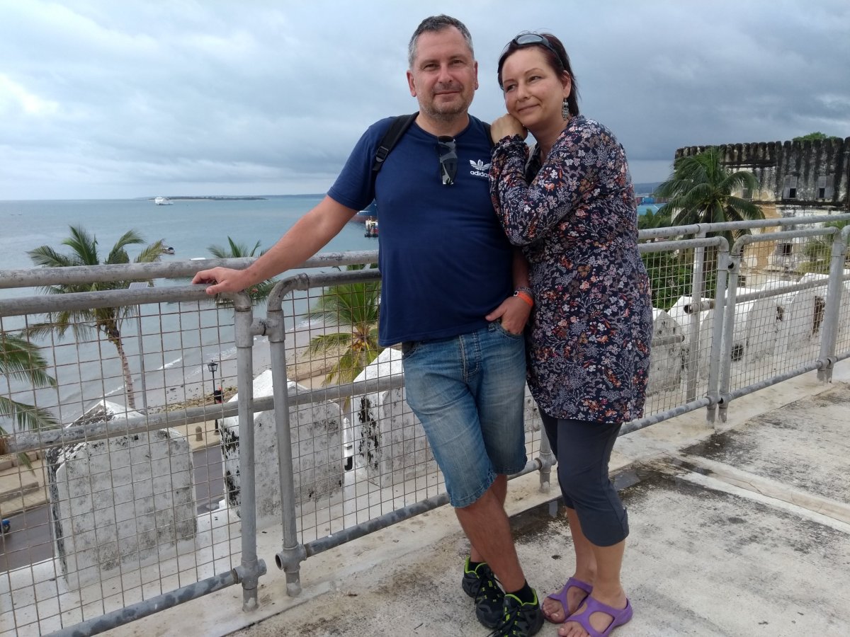 Na terase s výhledem na moře nás průvodce seznamuje s moderní historií Zanzibaru, která je mj. i kvůli socialistickému experimentu slušně pohnutá. Jako jeden z mála, se kterým se během svého pobytu potkáváme, je náš průvodce skutečně původem ze Zanzibaru. A je na to patřičně hrdý. A jak cítíme, Tanzance nemá v lásce, protože ti mj. ovládají i celý turistický sektor na Zanzibaru, zatímco místní jen paběrkují. Ostatně taky mají co do počtu obyvatel proti ostrovu asi 40-tinásobnou převahu. A jak jej posloucháme, tak soužití těchto kdysi samostatných zemí, které se v roce 1964 sjednotili pod názvem Tanzanie, což je zkratka jejich názvů – Tanganika a Zanzibar, není ze strany místních vnímáno zrovna pozitivně.