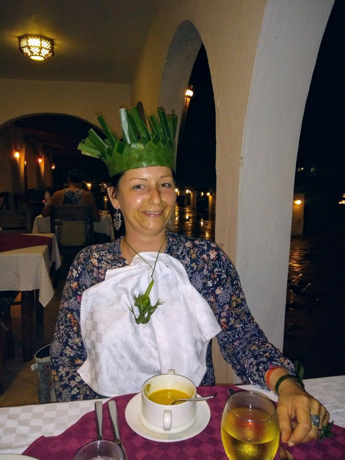 V závěru naší návštěvy se spouští déšť, ale to nebrání místní omladině, aby nám ukázali šplh po palmách a ruční sklizeň kokosáků. Na závěr nám z palmových listů ještě pletou parádní koruny. Takže jak je zde všude obvyklé a očekávané, loučíme se za šustění jednodolarovek a přes vnitrozemí nás už čeká cesta zpět na rezort, kde řidič i průvodce také dostávají nějaké obrázky s americkými prezidenty za celodenní šichtu.